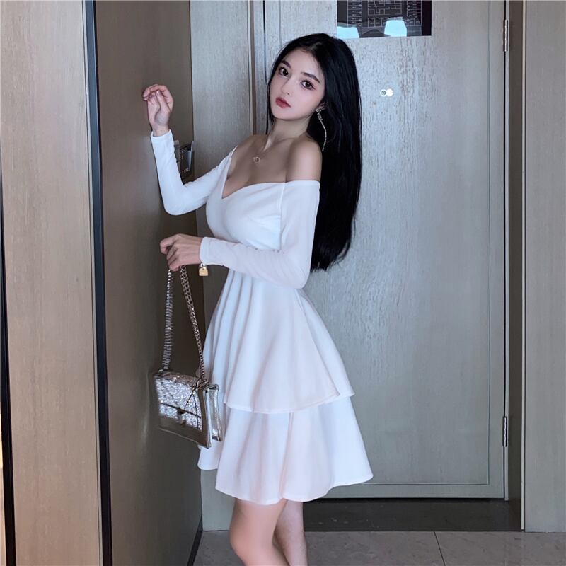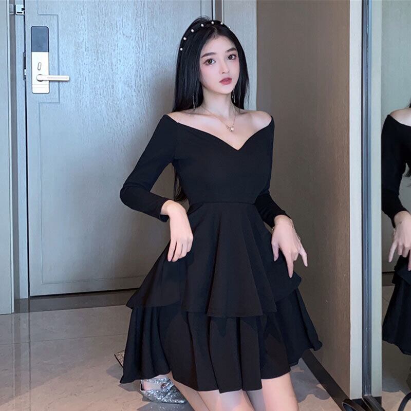 ナイトクラブレディースナイトクラブナイトクラブイブニングドレスセクシーなローカットディープVネック長袖ウエスト薄いふくらんでいるドレス micat25034417002