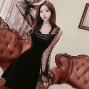 2021年秋新しい女性フレンチレトロヘップバーンスタイルリトルブラックドレスセクシーメッシュステッチゴールドベルベットドレス micat19359467440