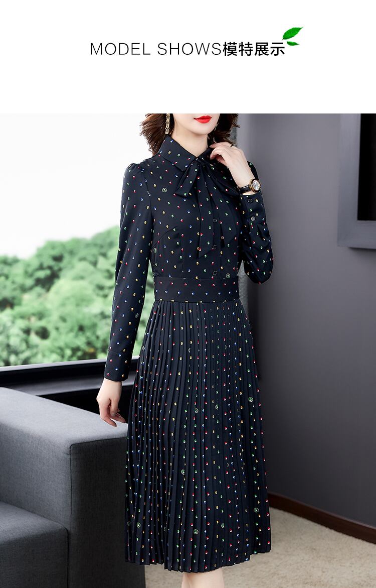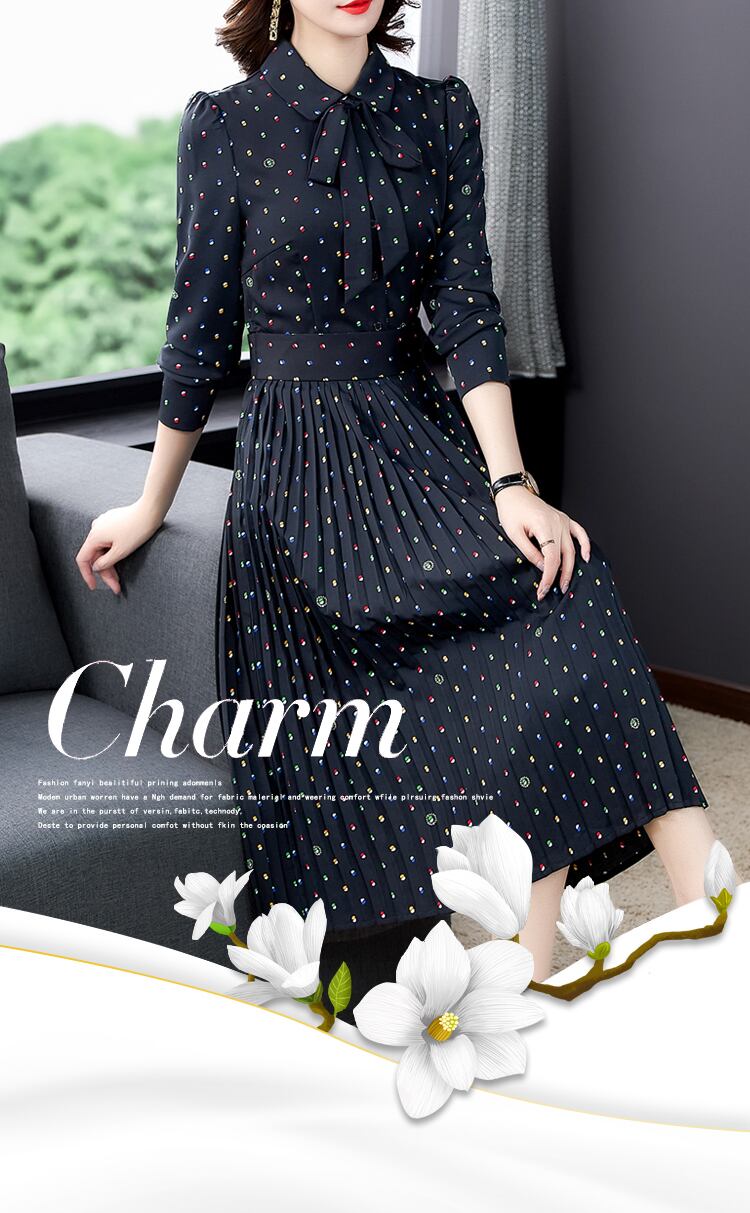 ラージサイズのレディースプリーツスカートレディース秋モデル2021年春秋新作レディース気質ハイエンドウエスタンスタイル水玉ドレス qmn25382552302