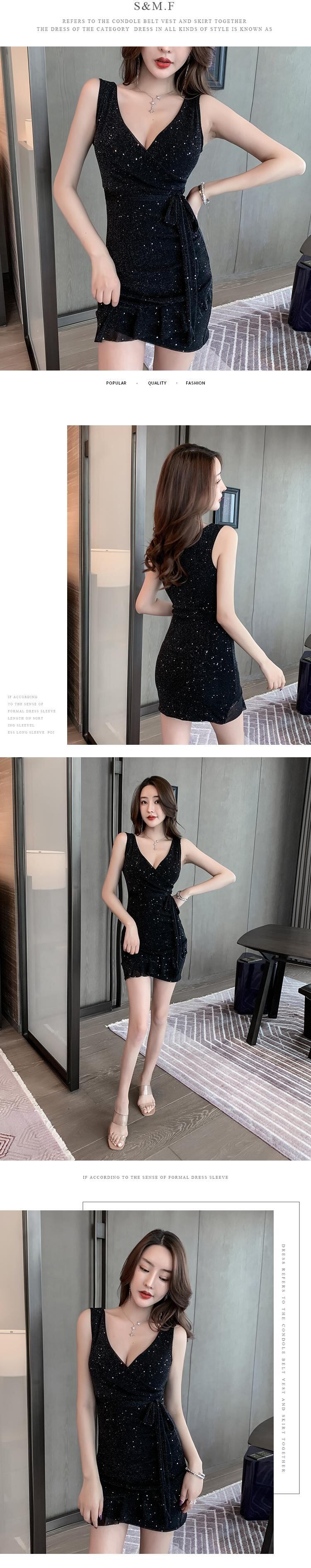 ナイトクラブの女性の夜の作業服セクシーなVネック光沢のあるメッシュ半ノースリーブスリムフィットヒップスカート micat35072196453