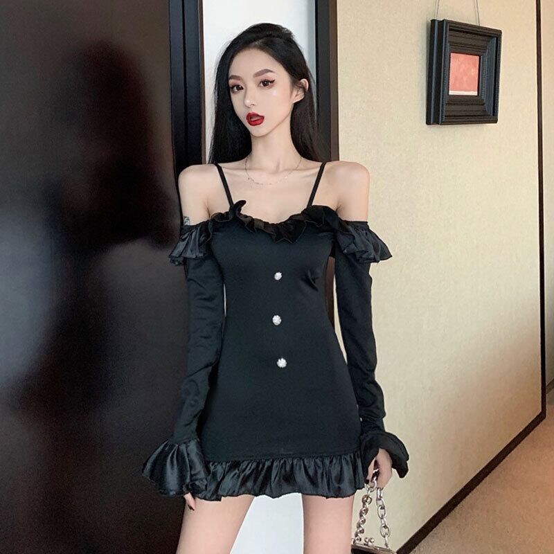 ライブ服女性アンカーポジェニックハイエンドフレンチフリルセクシーワンショルダー長袖フィッシュテールサスペンダードレス micat91042833784