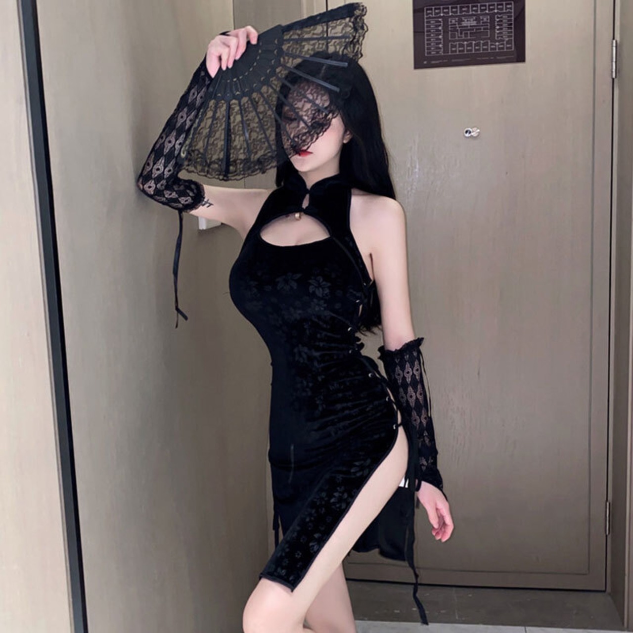 ライブ服女性アンカーポジェニックハイエンドナイトセクシー中空レースアップ超高スプリット修正チャイナドレス micat71128173502