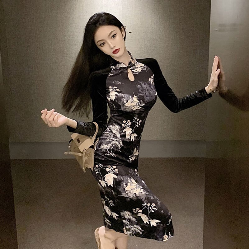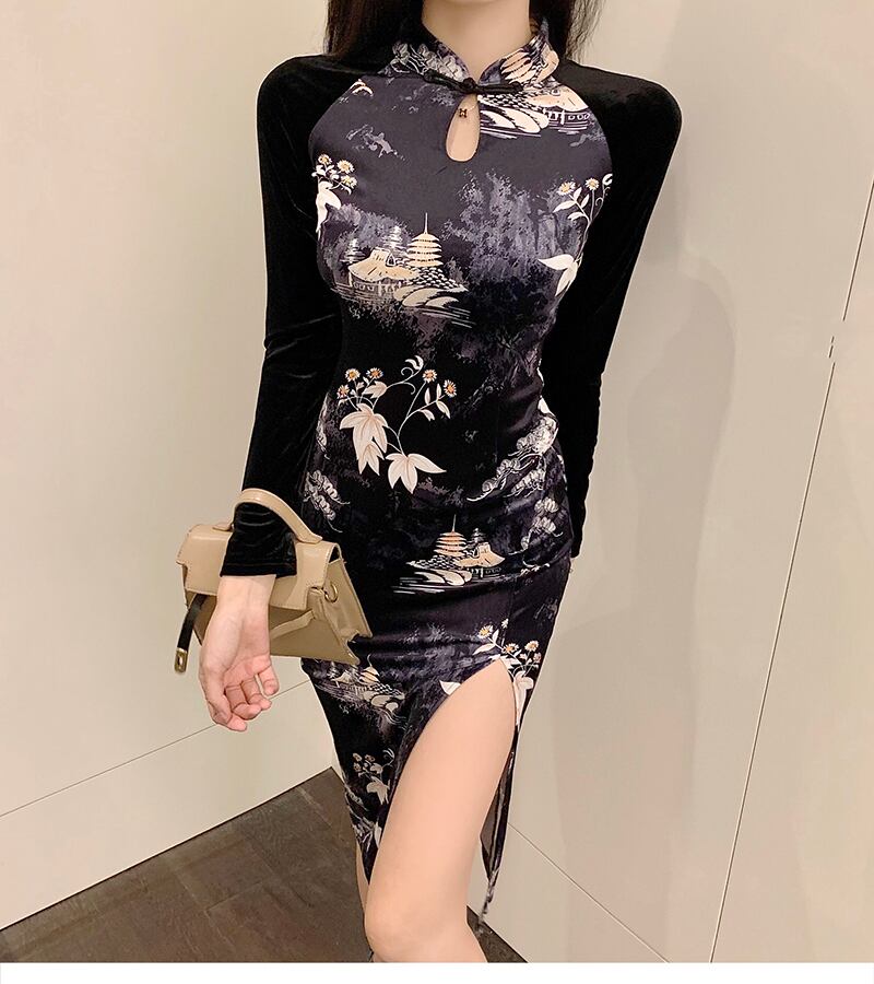 改良されたチャイナドレス2021年秋冬新しいスタイルの若いレトロな中国風のプリントセクシーなショートスプリットドレス micat18590328951