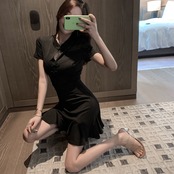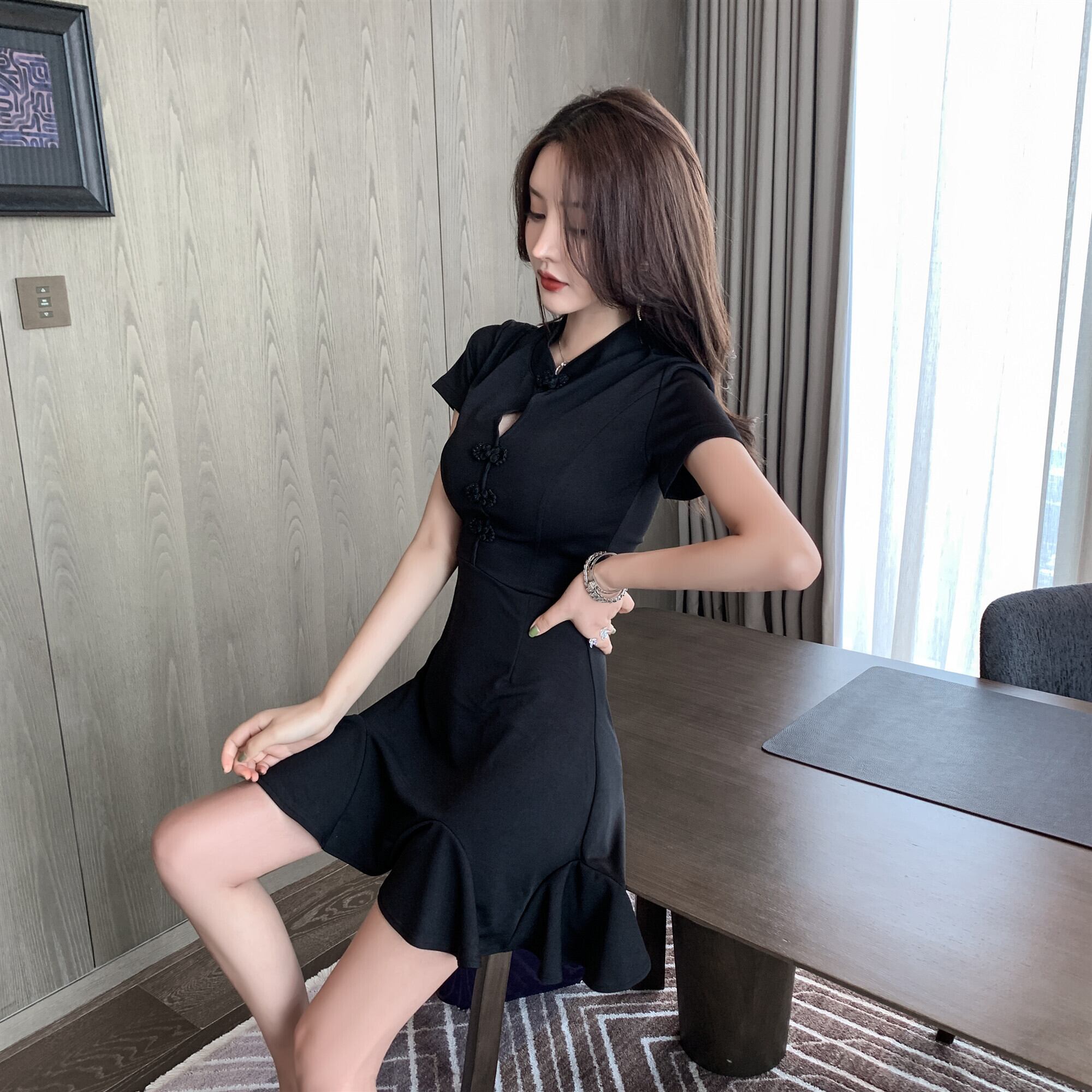 スタイルチャイナドレス2021新しいトレンディな黒の若いスタイルの毎日の改善されたバージョン中国スタイルのフィッシュテールドレス micat6633482451