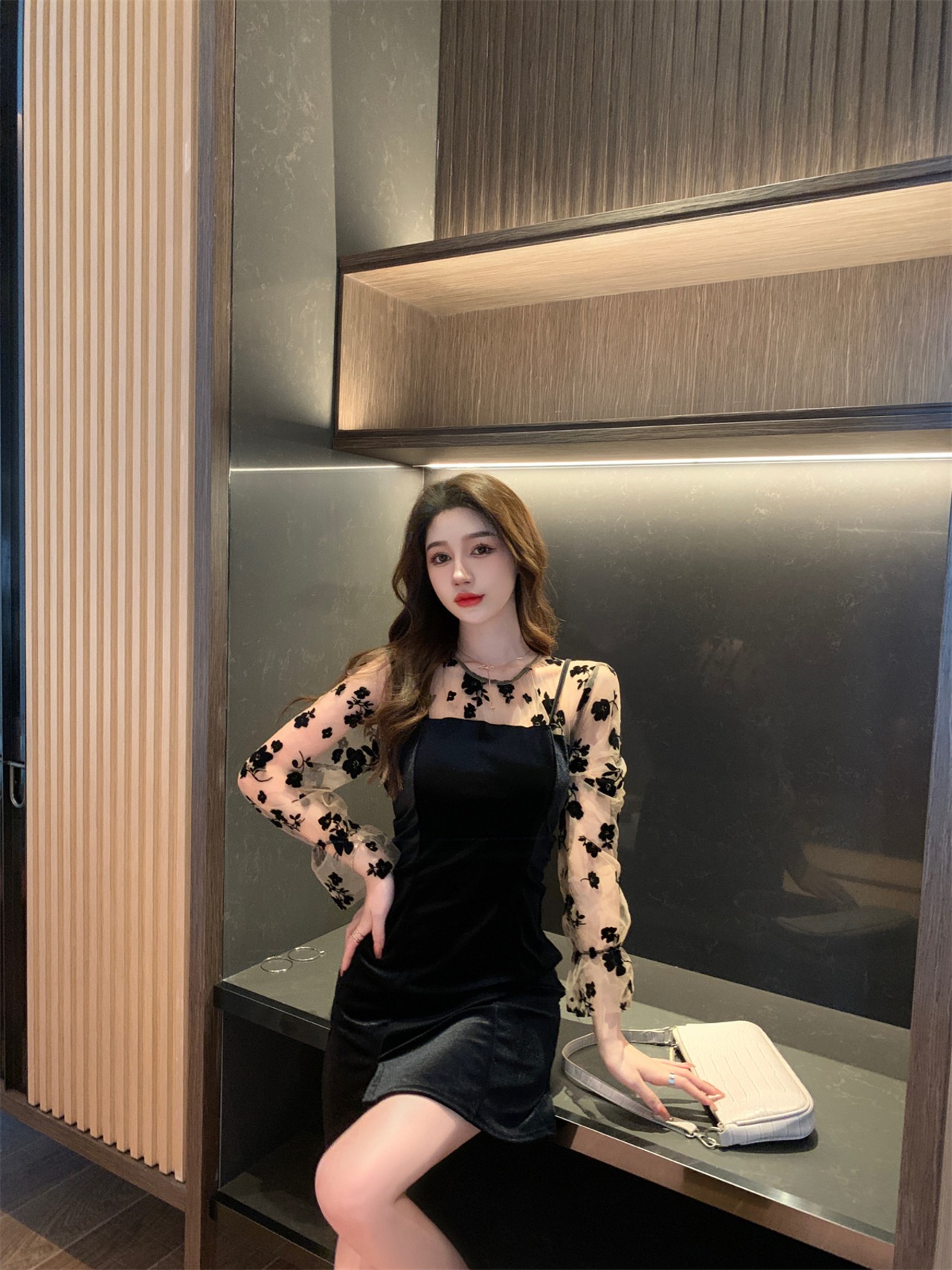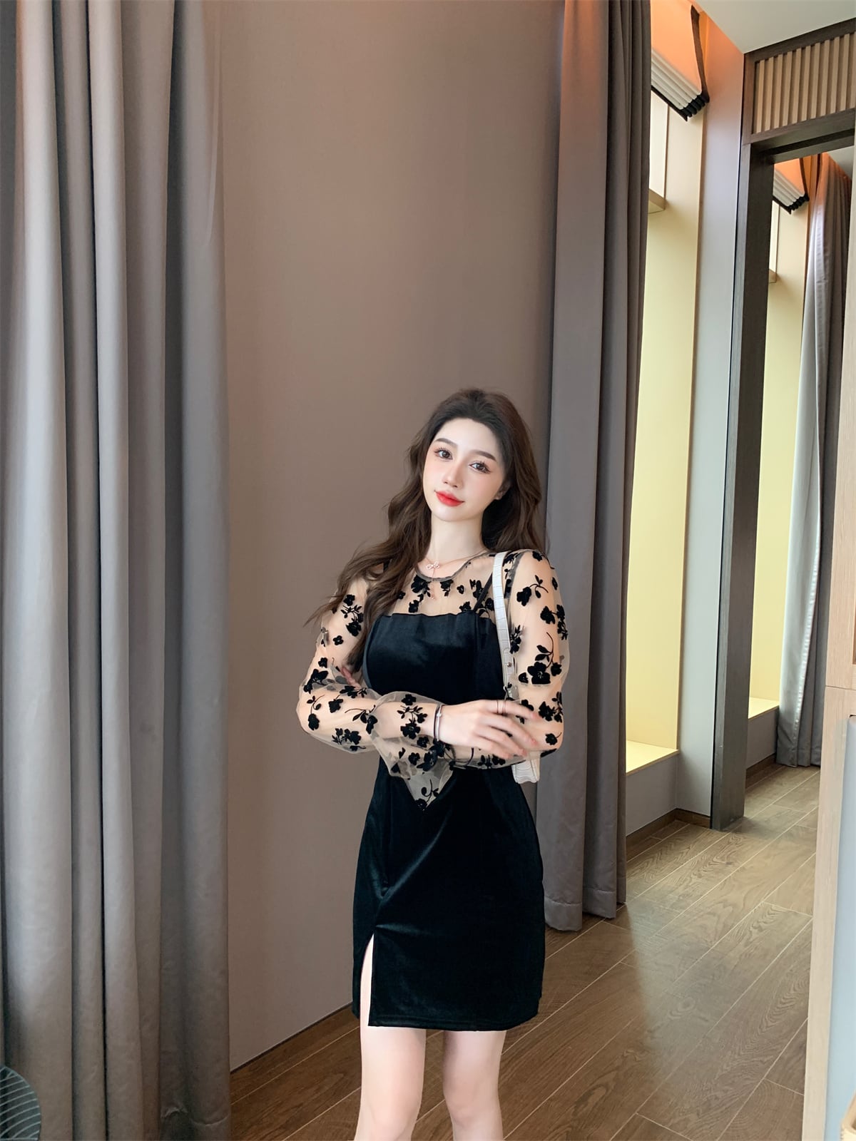 2021年秋新しい女性のフレンチヘップバーンスタイルのセクシーなメッシュステッチ気質ヒップゴールドベルベットドレス micat64437574635