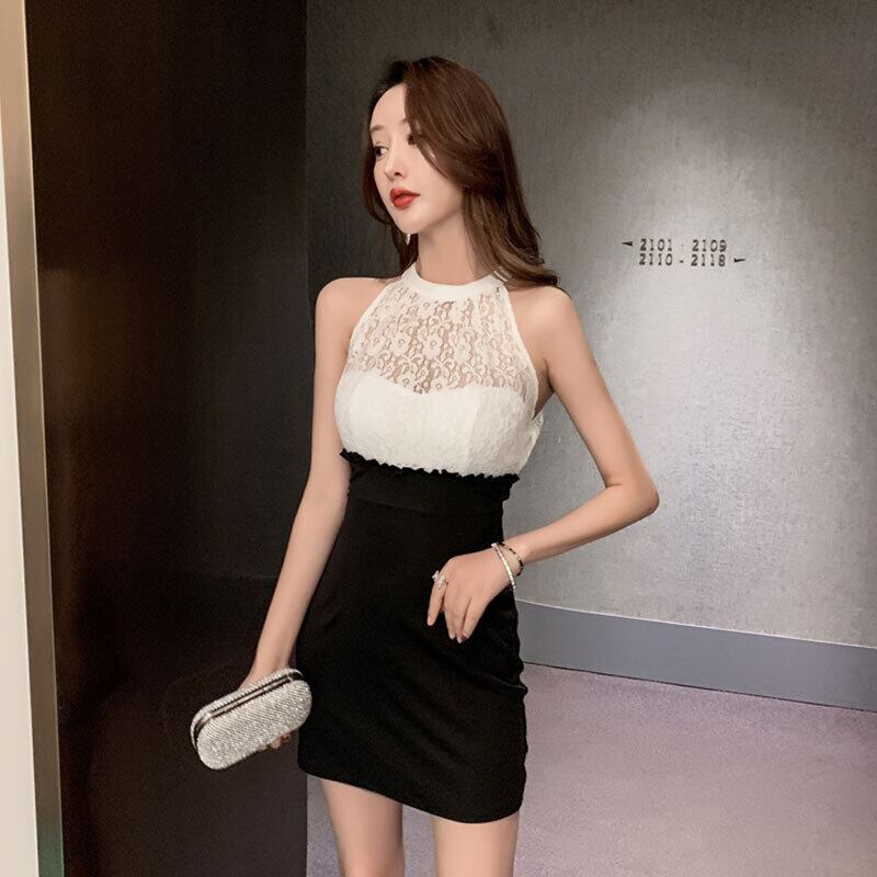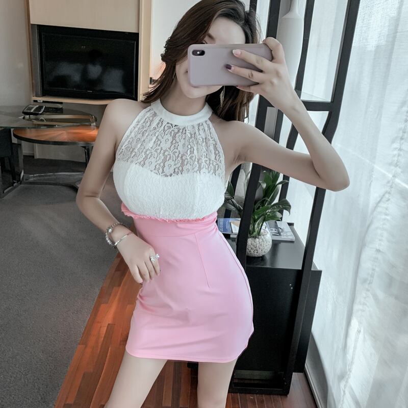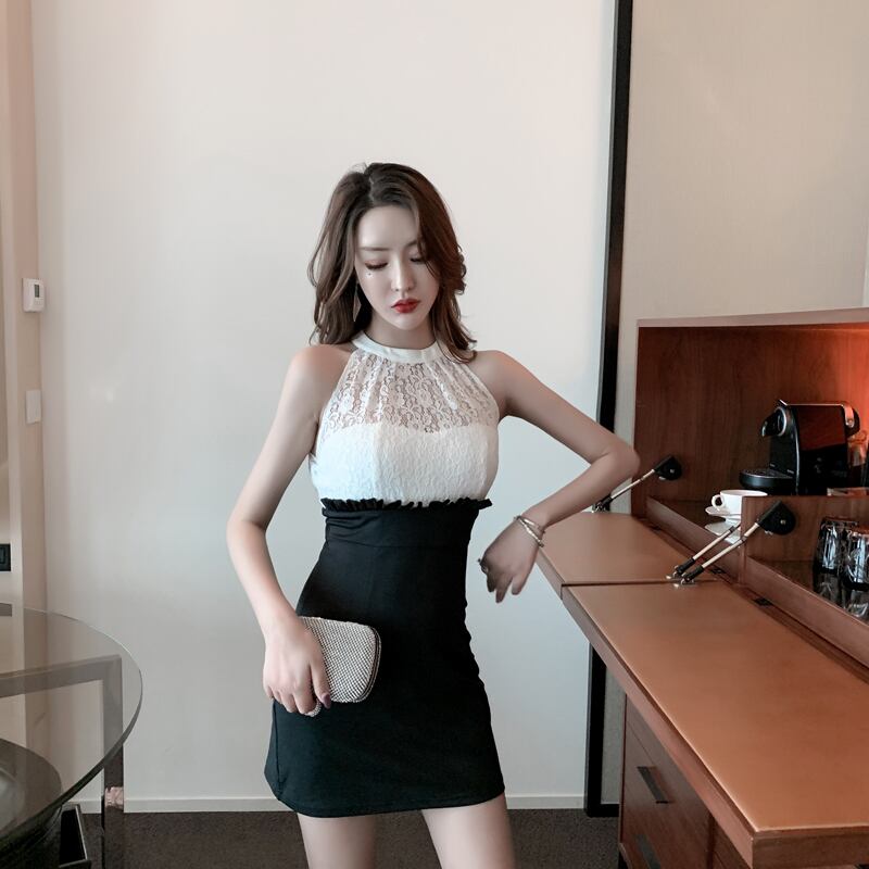 ナイトクラブレディースナイトワーク服作業服気質セクシーなレースステッチバッグヒップストラップレスネックドレス micat51388276191