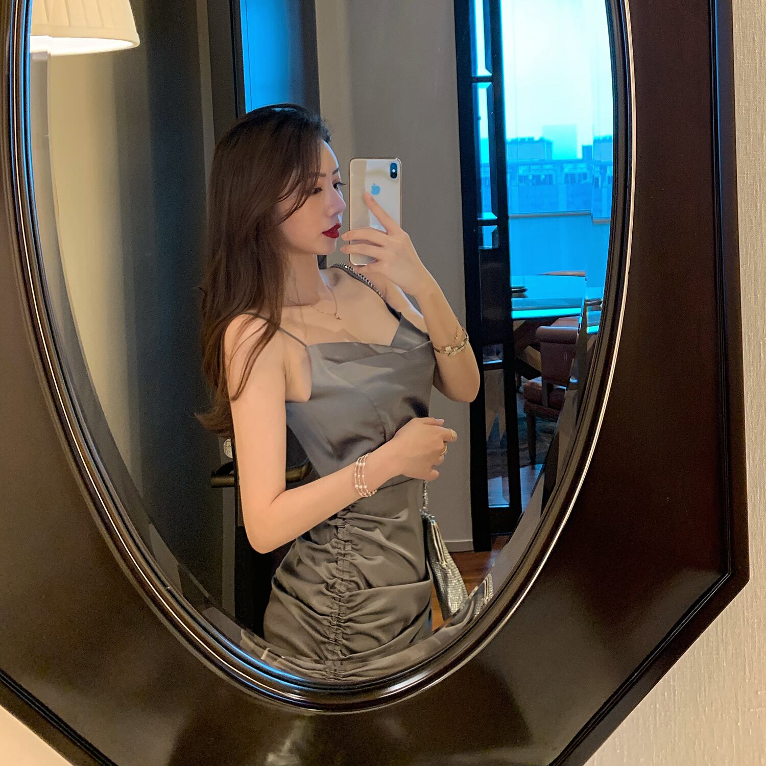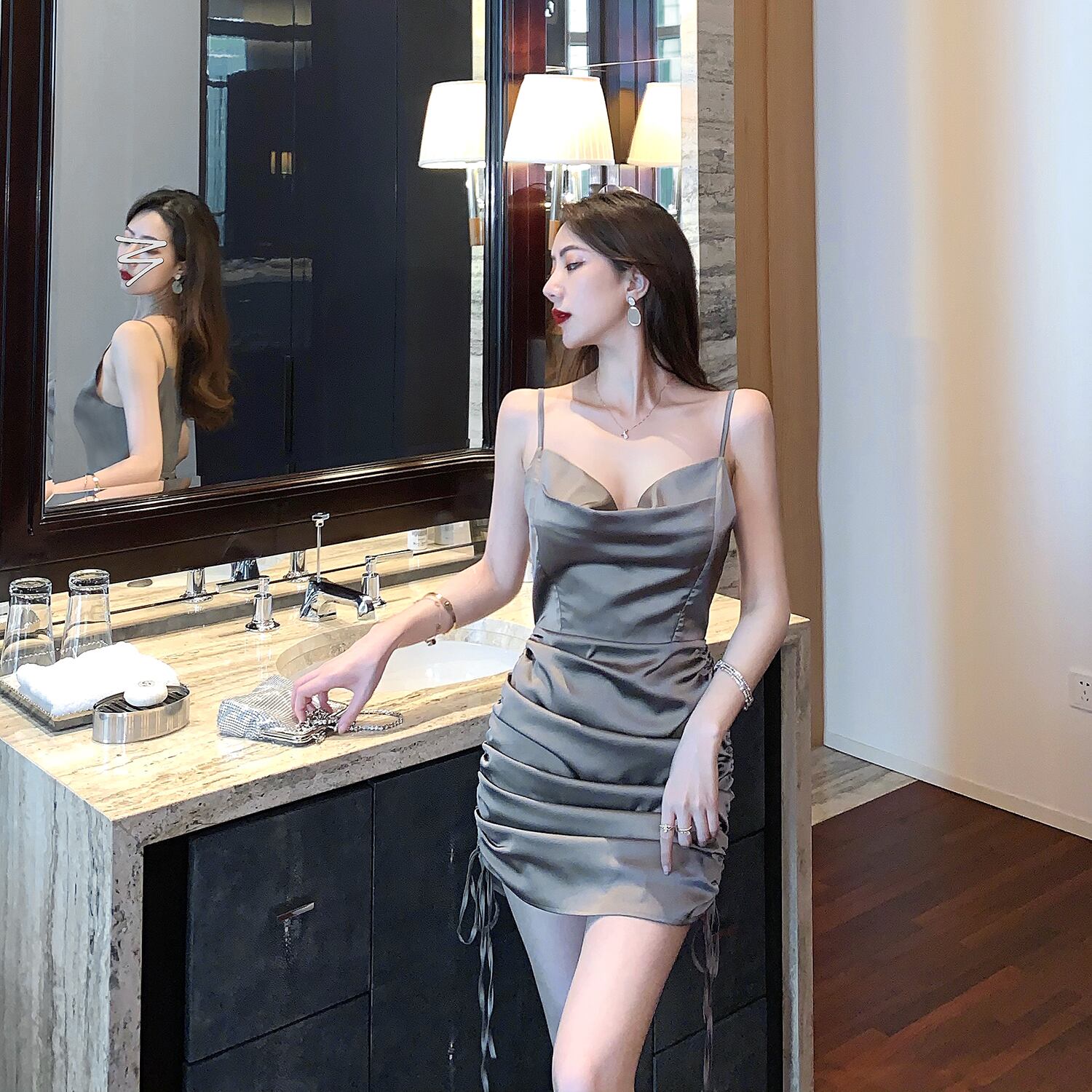 イブニングバンケット、ウエスタンスタイル、ショートドレス、ナイトクラブ、レディース、レディース、セクシー、スリム、シン、サテンのスリングドレス micat97197883910