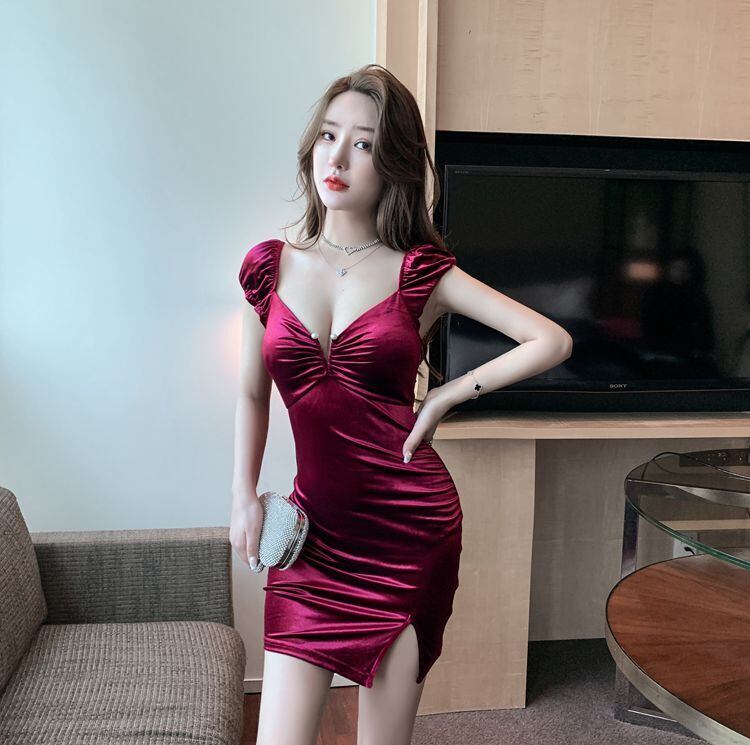 ナイトクラブの女性の秋と冬の作業服セクシーなオーバーオールローカットディープVネックホルターゴールドベルベットドレス micat70856615144
