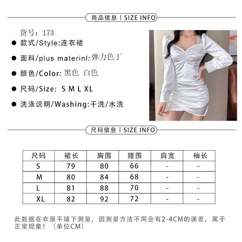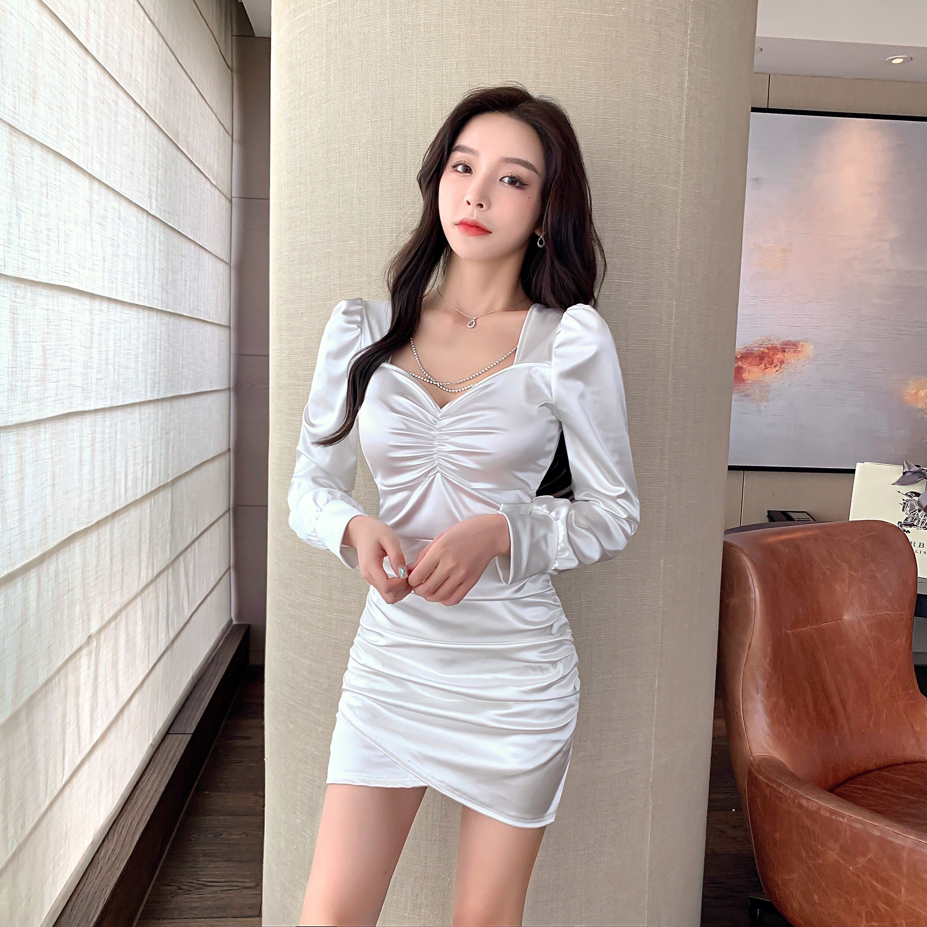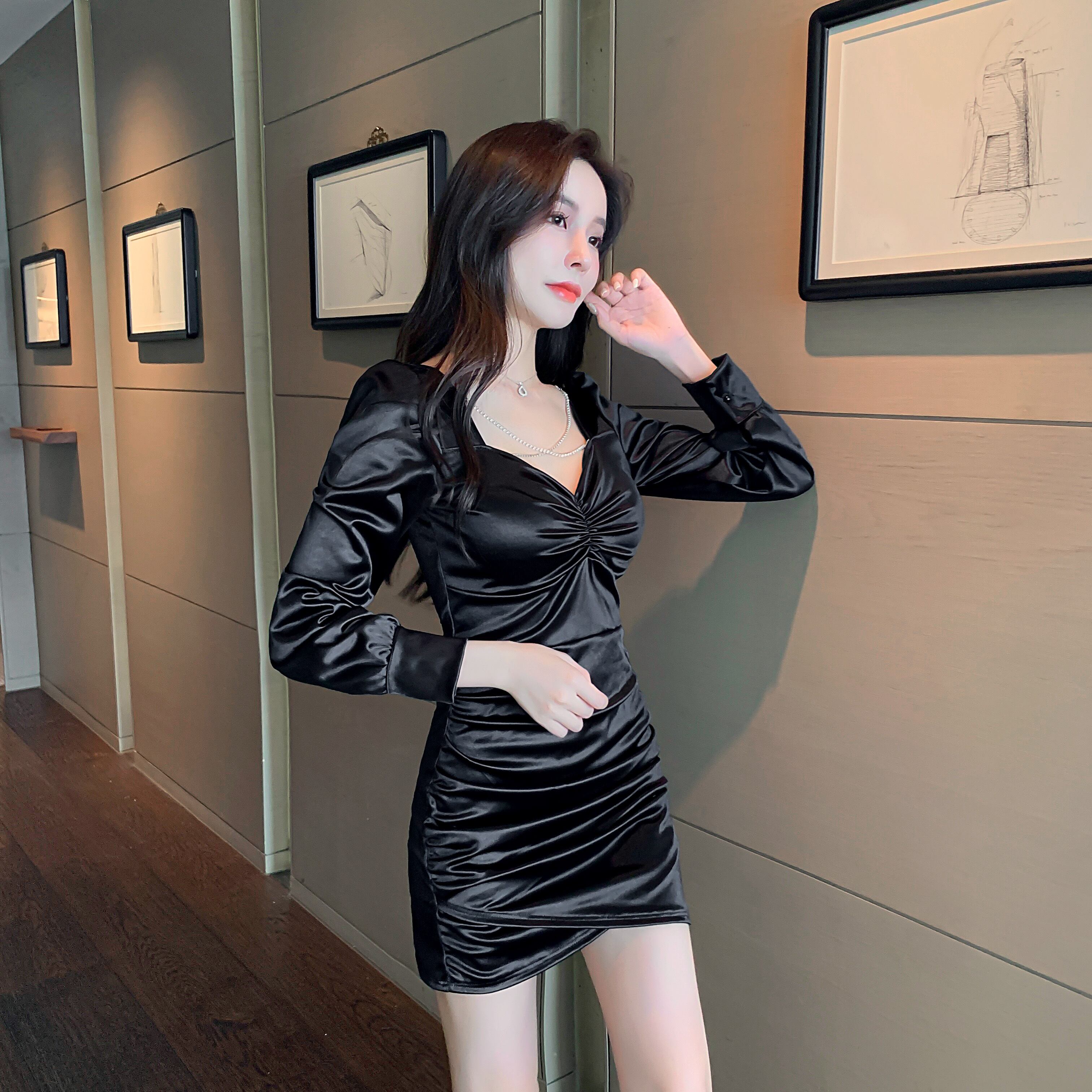 ナイトクラブレディース秋の夜の作業服気質セクシーなローカットディープVネックサテン長袖ヒップドレス micat64339733318