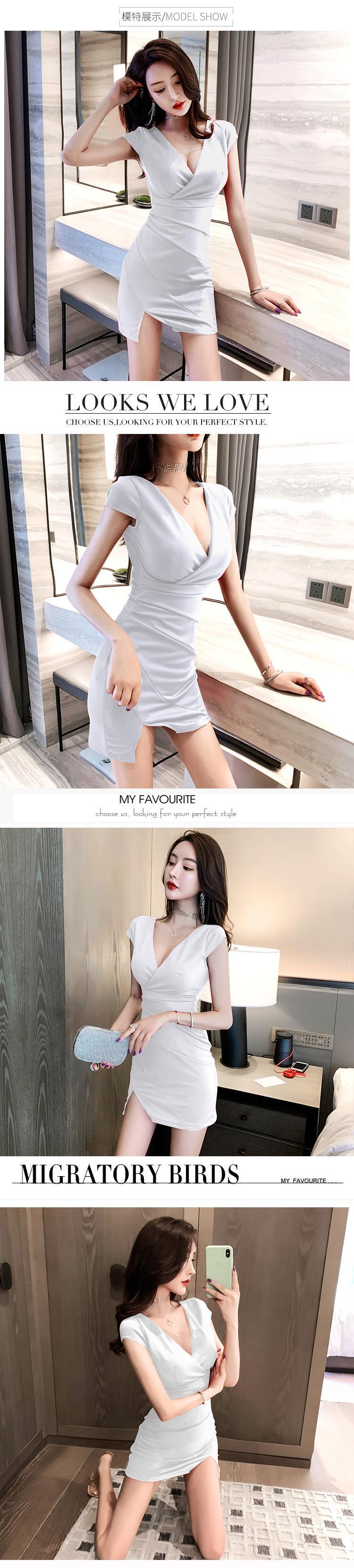 セクシーなナイトクラブの女性の足湯技術者のオーバーオールローカットディープVネック半袖ウエストとスリムヒップドレス micat6162806241