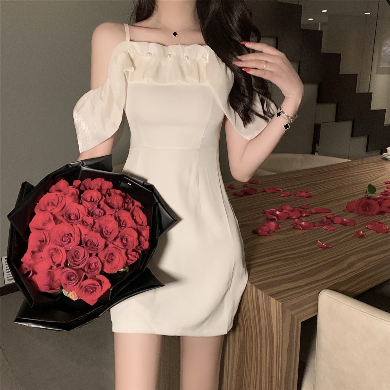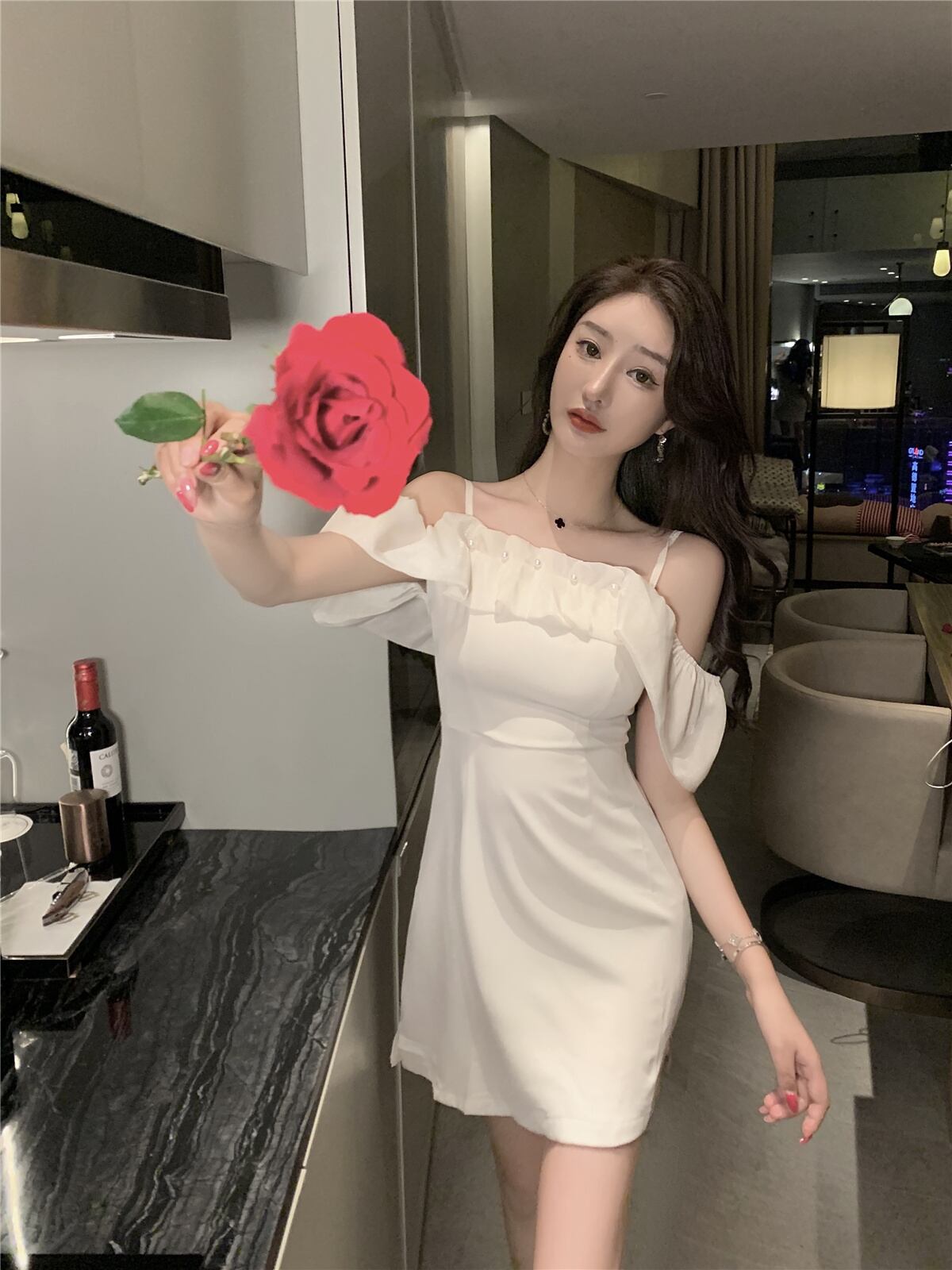 パーティーフランス年次総会白いドレスショートディナーパーティー気質セクシーなワンショルダースリングドレス micat82441387655