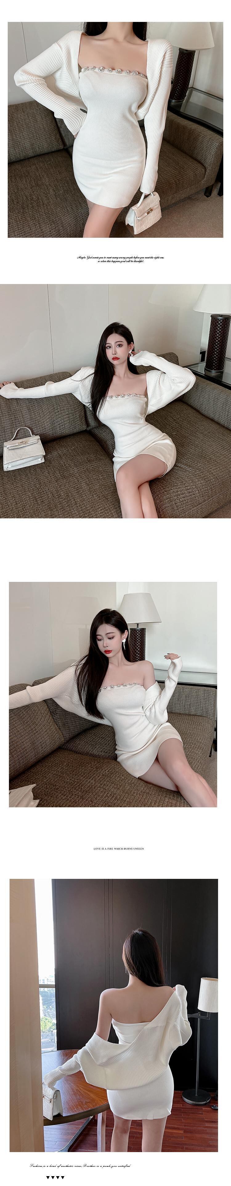 ベンミングヤングレッドライトクックドロイヤルシスタースタイルスーツスプリングニットカーディガン+セクシーチューブトップドレスツーピースセット micat58675660507