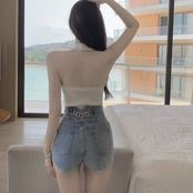 生放送服女性アンカー甘い弓セクシーな短いへそニットアウターベストホルタートップ micat71143255037