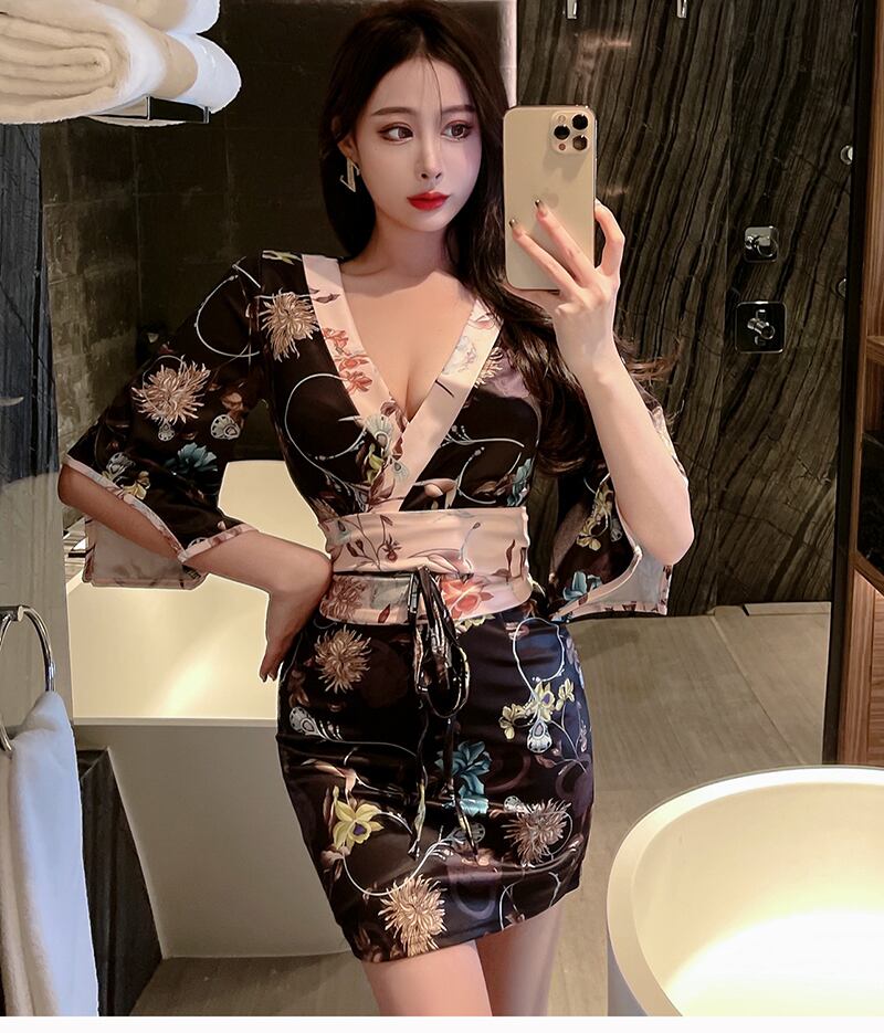 セクシーなナイトクラブの女性のナイトクラブのフットバス技術者のオーバーオール気質ローカットディープVネック着物ドレス micat47233871796