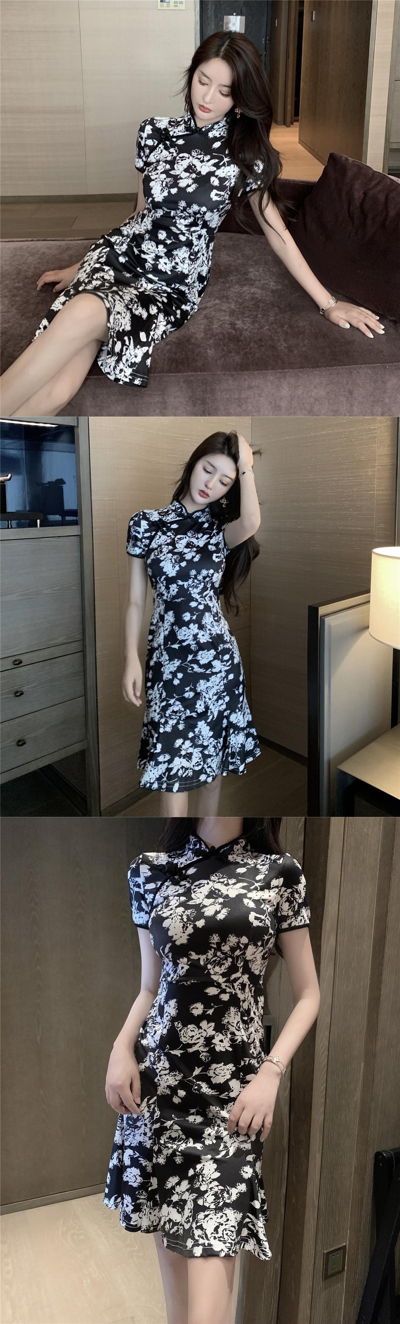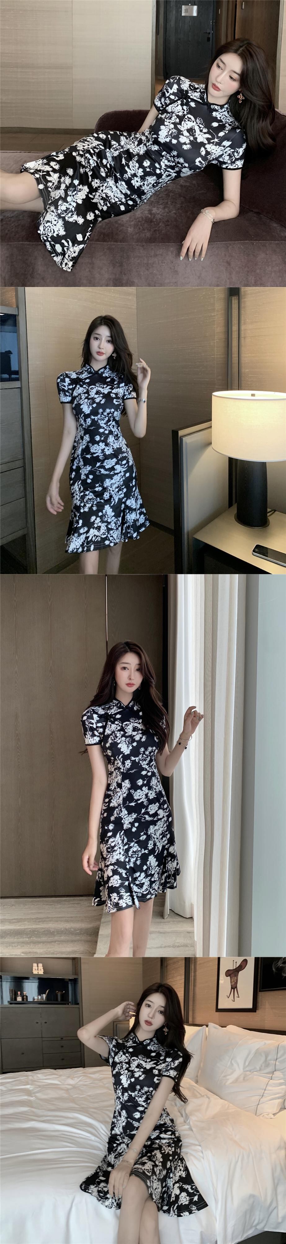 改良されたチャイナドレス2022新しいレトロ中華民国若いハイエンド気質半袖ヒップパックフィッシュテールドレス micat66910098334