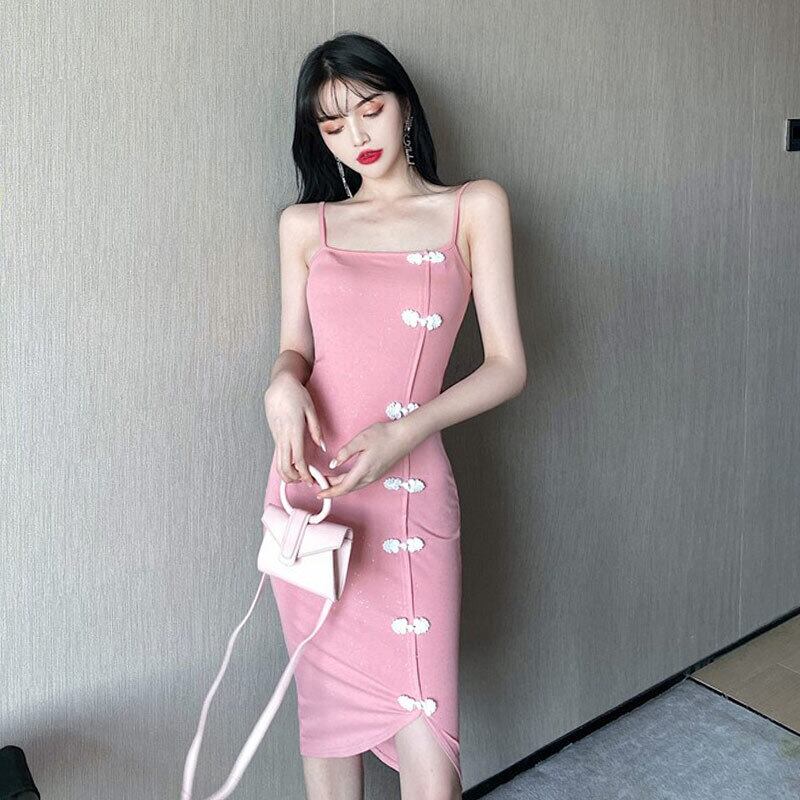 改良されたチャイナドレス2022新しい若いレトロなディスクバックル輝くyセクシーなミドル丈のサスペンダードレス micat80026232683