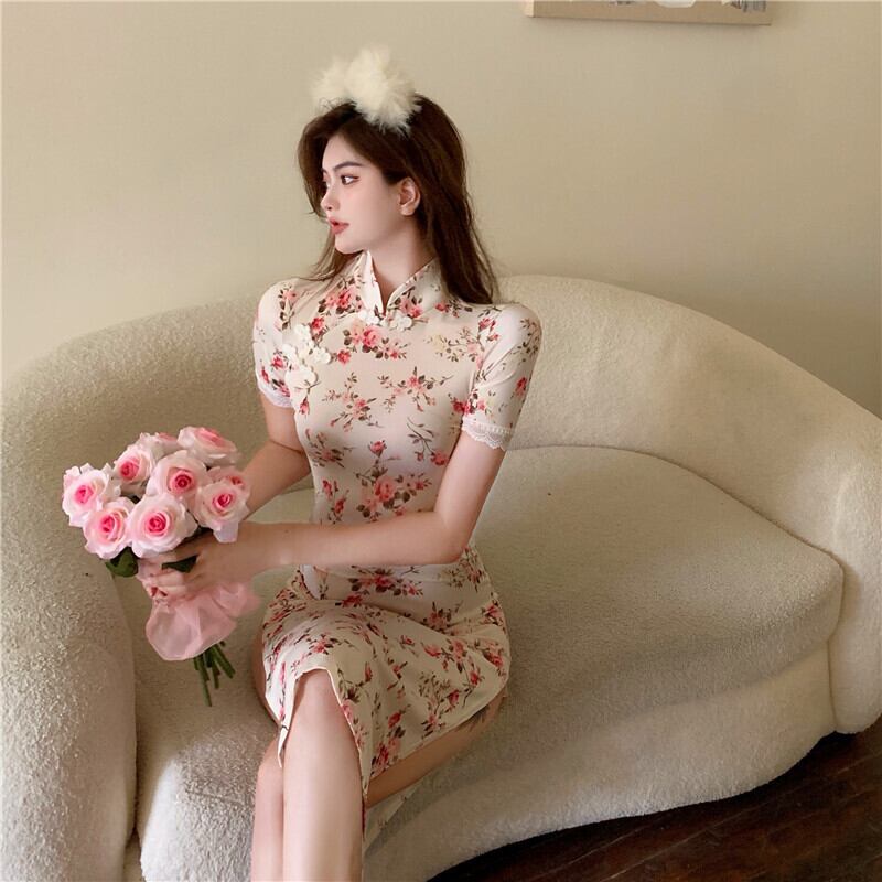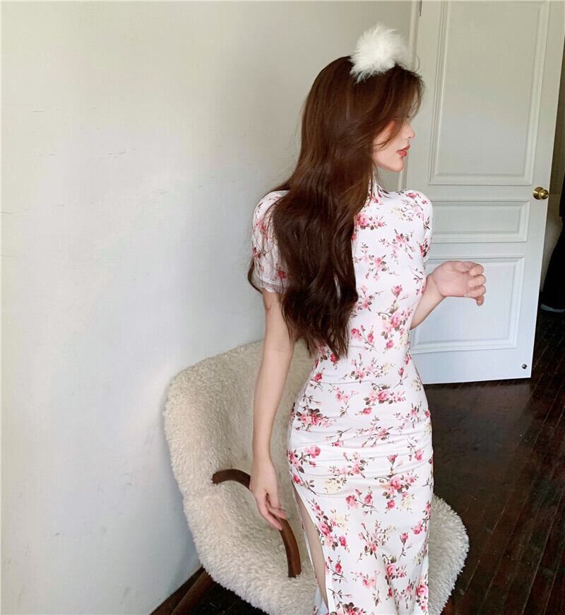 ライブ服女性アンカーポジェニックナイトショップ若いレトロな中国風セクシーなハイスリット花柄ドレス micat98325909823