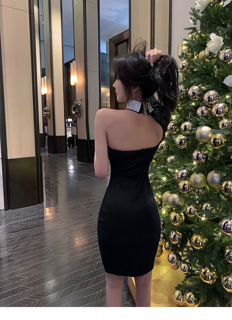 黒のイブニングドレスイブニングドレスハイエンド気質ハイエンドスモールドレスショートセクシーなオフショルダーホルターネックドレス micat66636504803