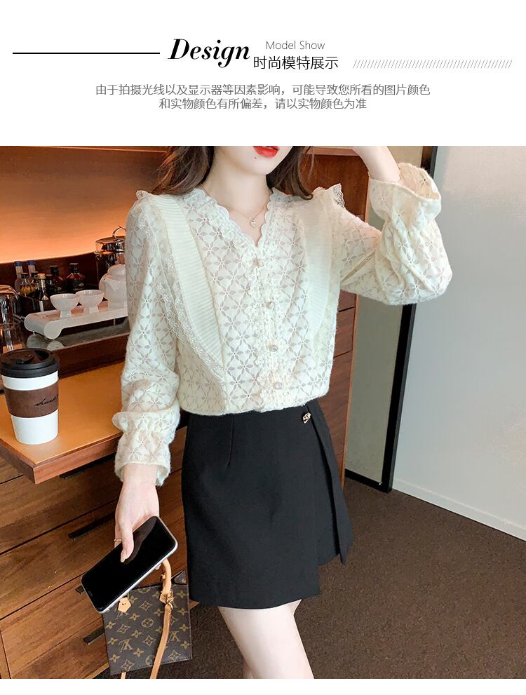 スーパーフェアリーフリルレースシャツレディース2022年春秋新作フレンチレトロVネックシャツウエスタンスタイルスモールシャツトップス qmn57015542284