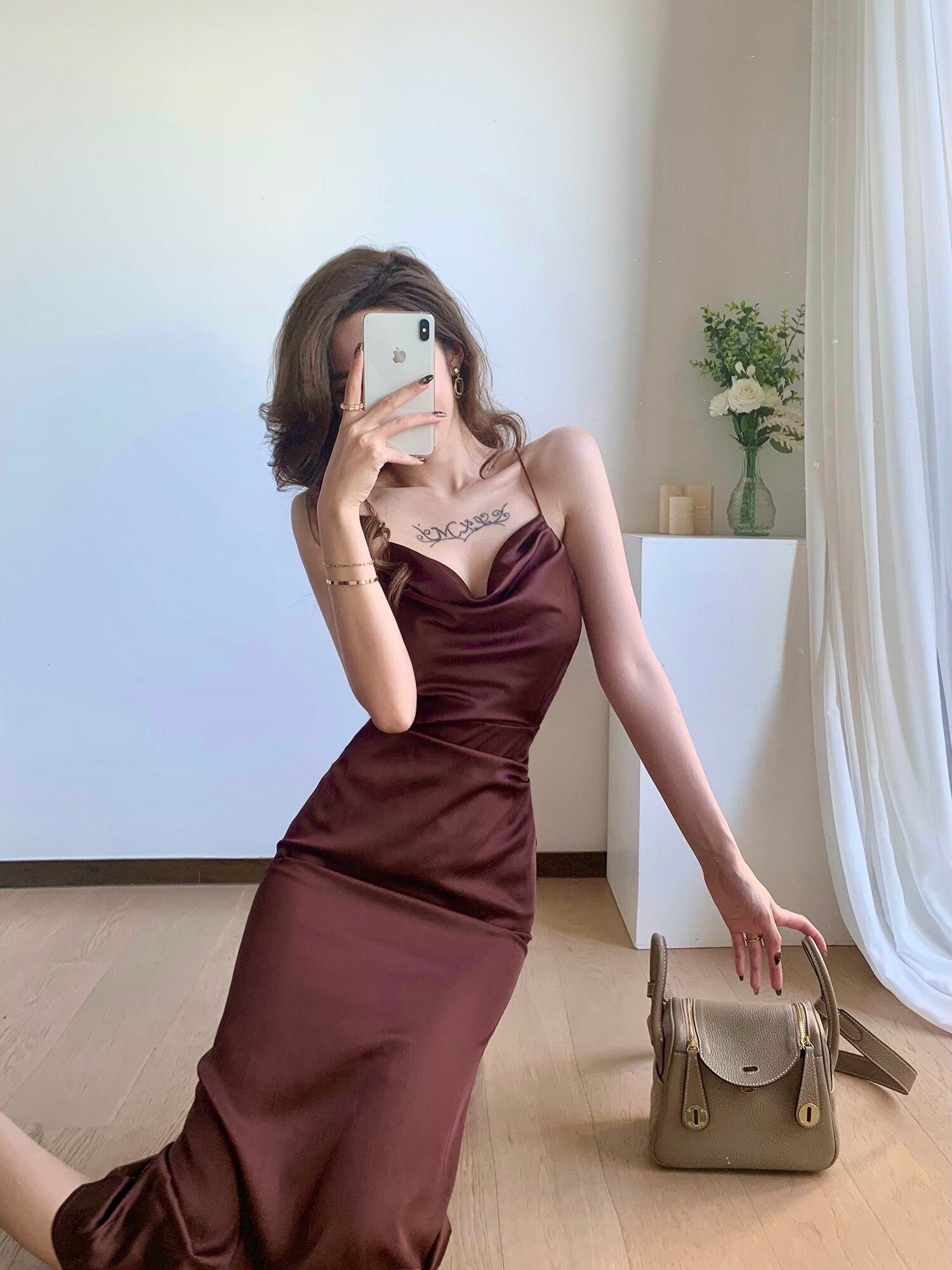 イブニングドレスナイトクラブレディースナイトクラブハイエンド気質セクシーバックレスストラップミドル丈サスペンダードレス micat69927307041