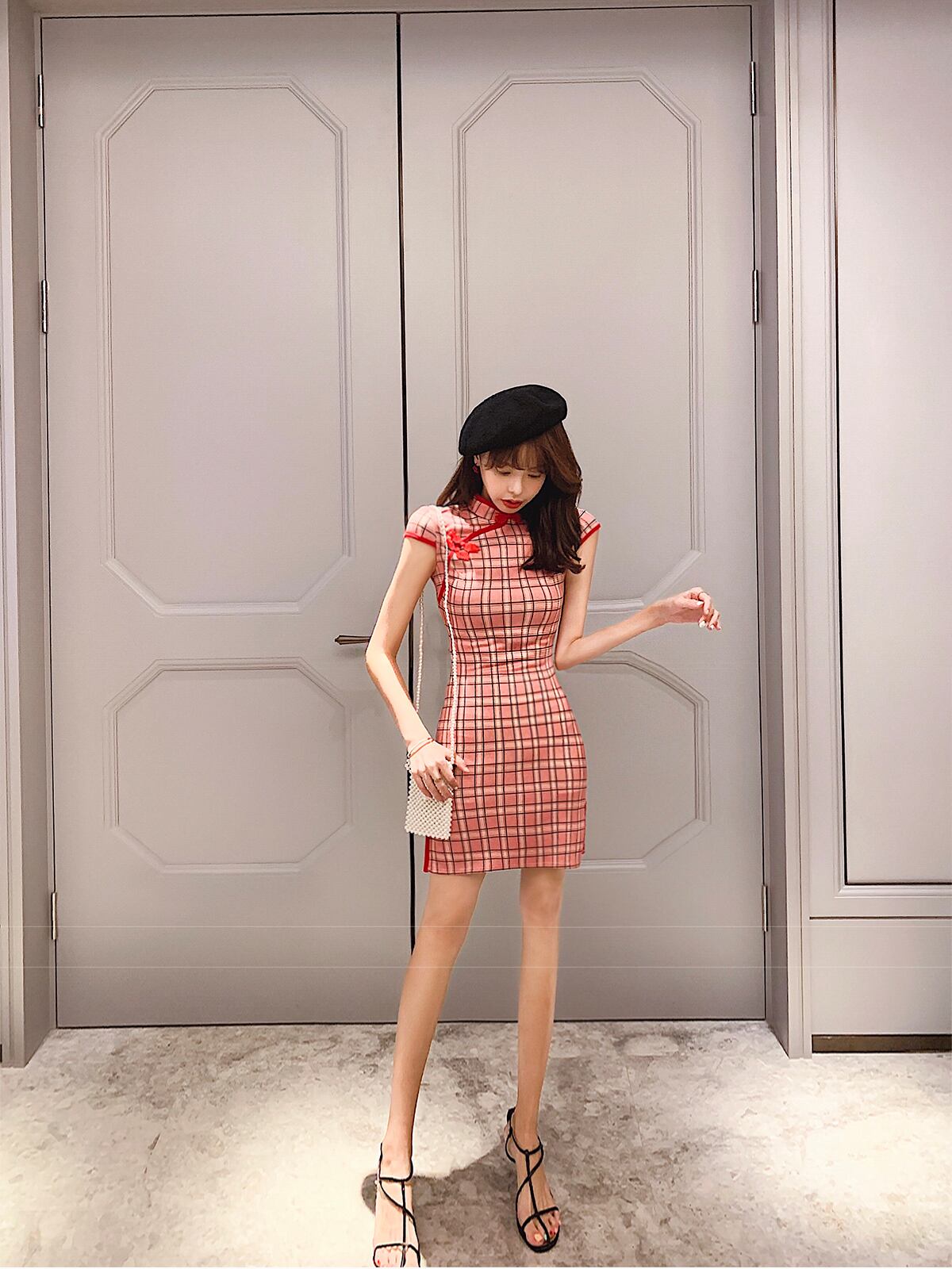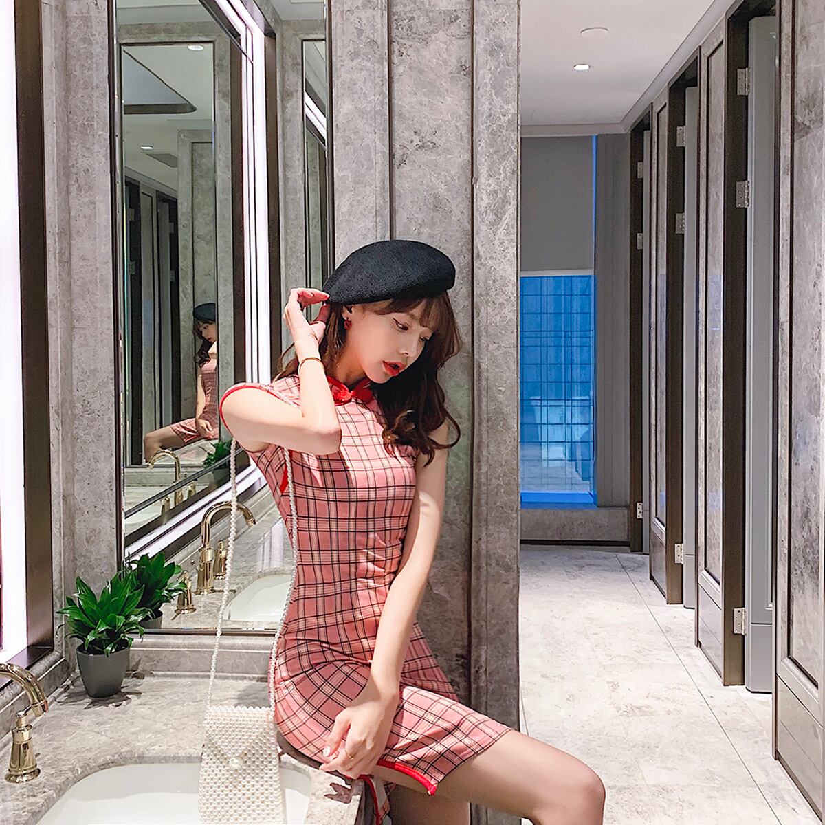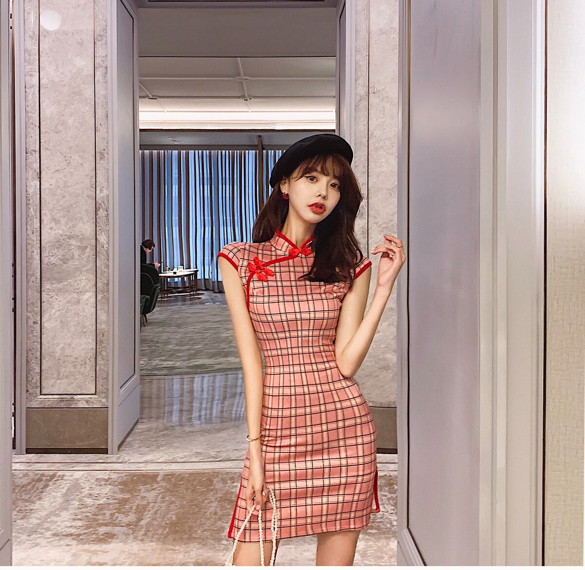 中華民国の若い祖母の服はチャイナドレスの若いレトロな格子縞のセクシーなショートヒップドレスを改善しました micat23020623954