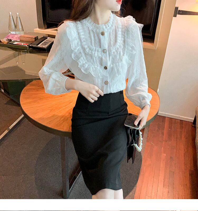2022年春秋新作フリルレースシャツレディースファッション気質長袖シャツスーパーフェアリーレースボトミングシャツ qmn19404720240