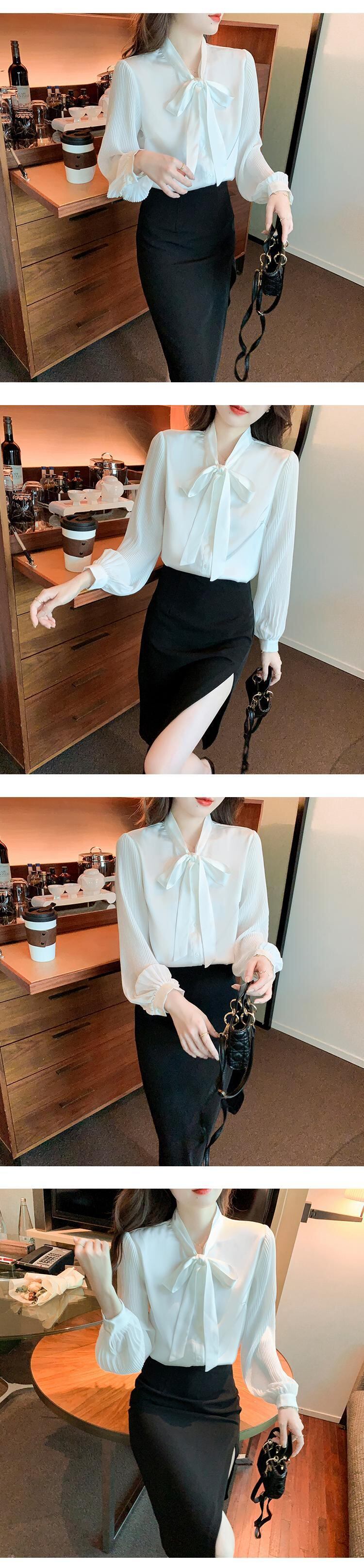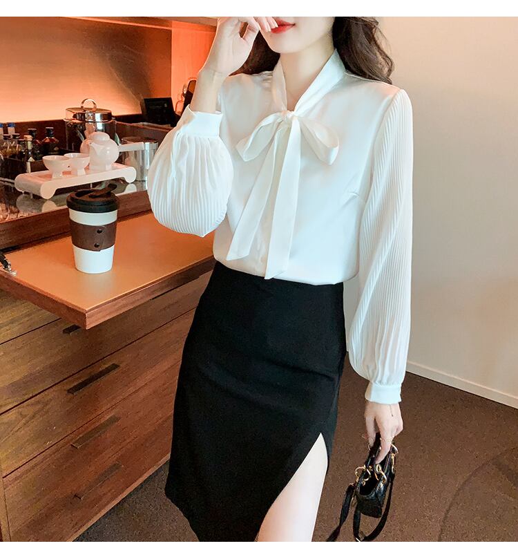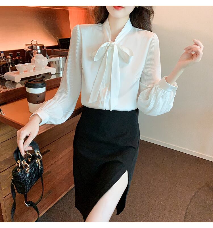 2022年春秋新作弓気質ピアオキシアンシフォンシャツレディースファッション気質白長袖シャツトップ qmn15150213879