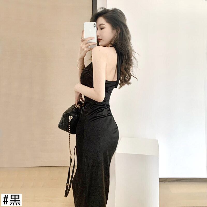 黒のイブニングドレスロングスカート女性のハイエンドの宴会の気質スリムでセクシーな背中の開いたロングストラップホルタードレス micat64302221400