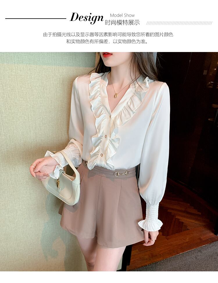 2022年春秋新作ファッション気質蓮の葉Vネックランタンスリーブシフォンシャツレディース長袖白シャツトップ qmn29804795100