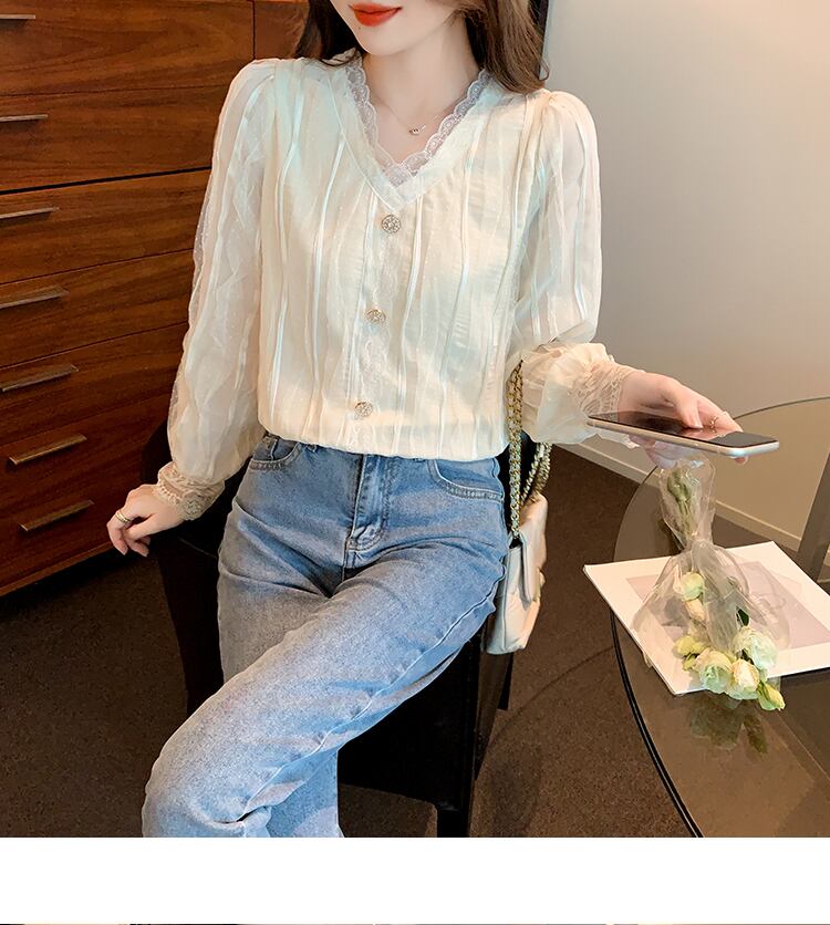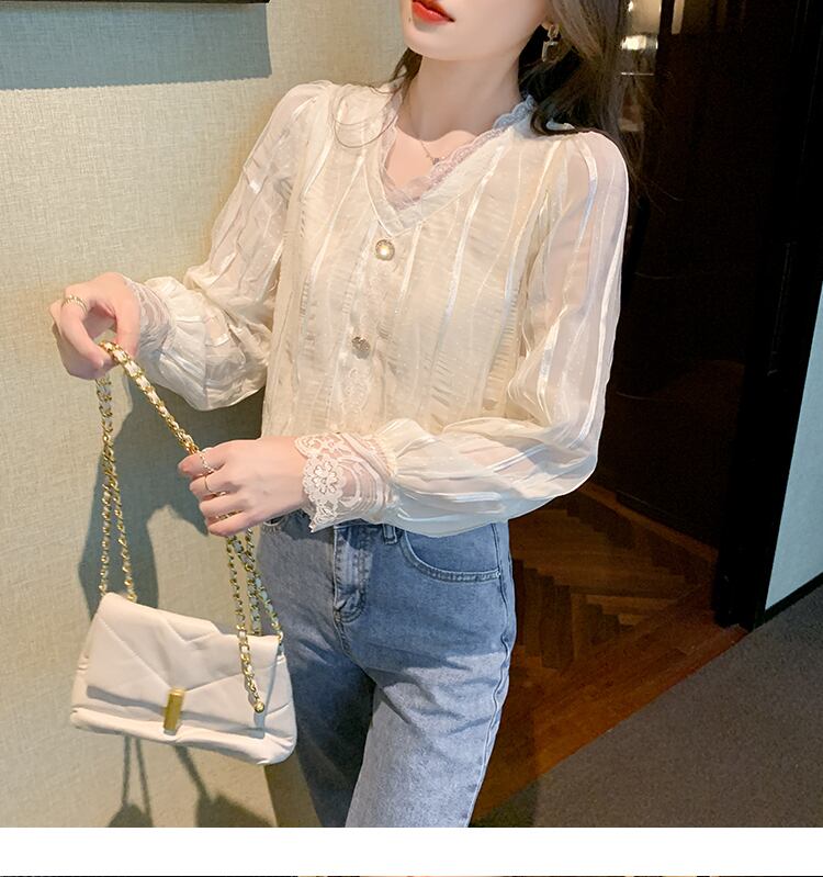 リトルフェアリーレースシャツ2022春と秋のシフォンシャツフェミニンなランタンスリーブシャツトップ qmn67069598818