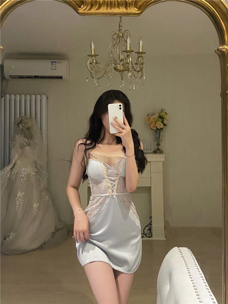 セクシーなパジャマ女性の夏のレースの薄いセクションと胸パッド小さな胸のレースのサスペンダーナイトドレスいちゃつく誘惑ドレス micat87788250937