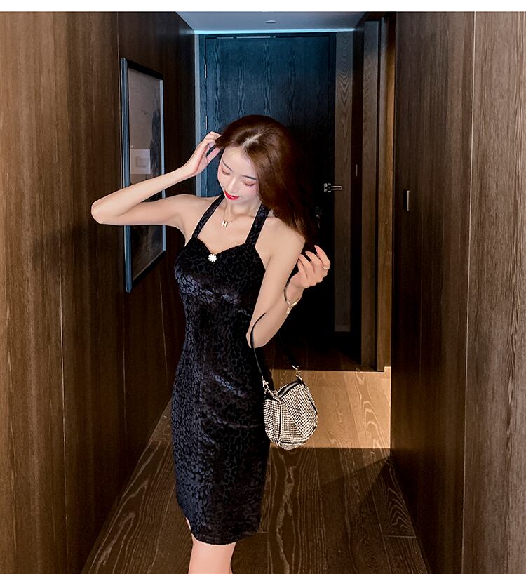 ナイトクラブの女性のイブニングスモールドレスショートバンケット気質セクシーな背中の開いたゴールドベルベットバッグヒップホルタードレス micat90085370807