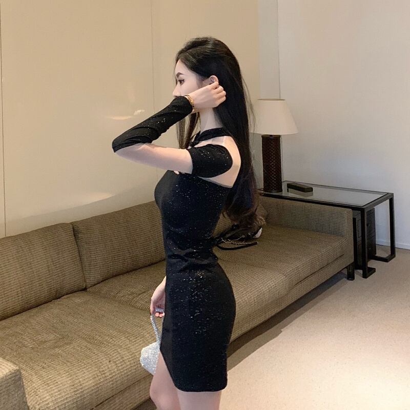 ネット赤いアンカー服女性の秋の夜のセクシーなメッシュステッチ光沢のある長袖の改良されたチャイナドレス micat58271854417