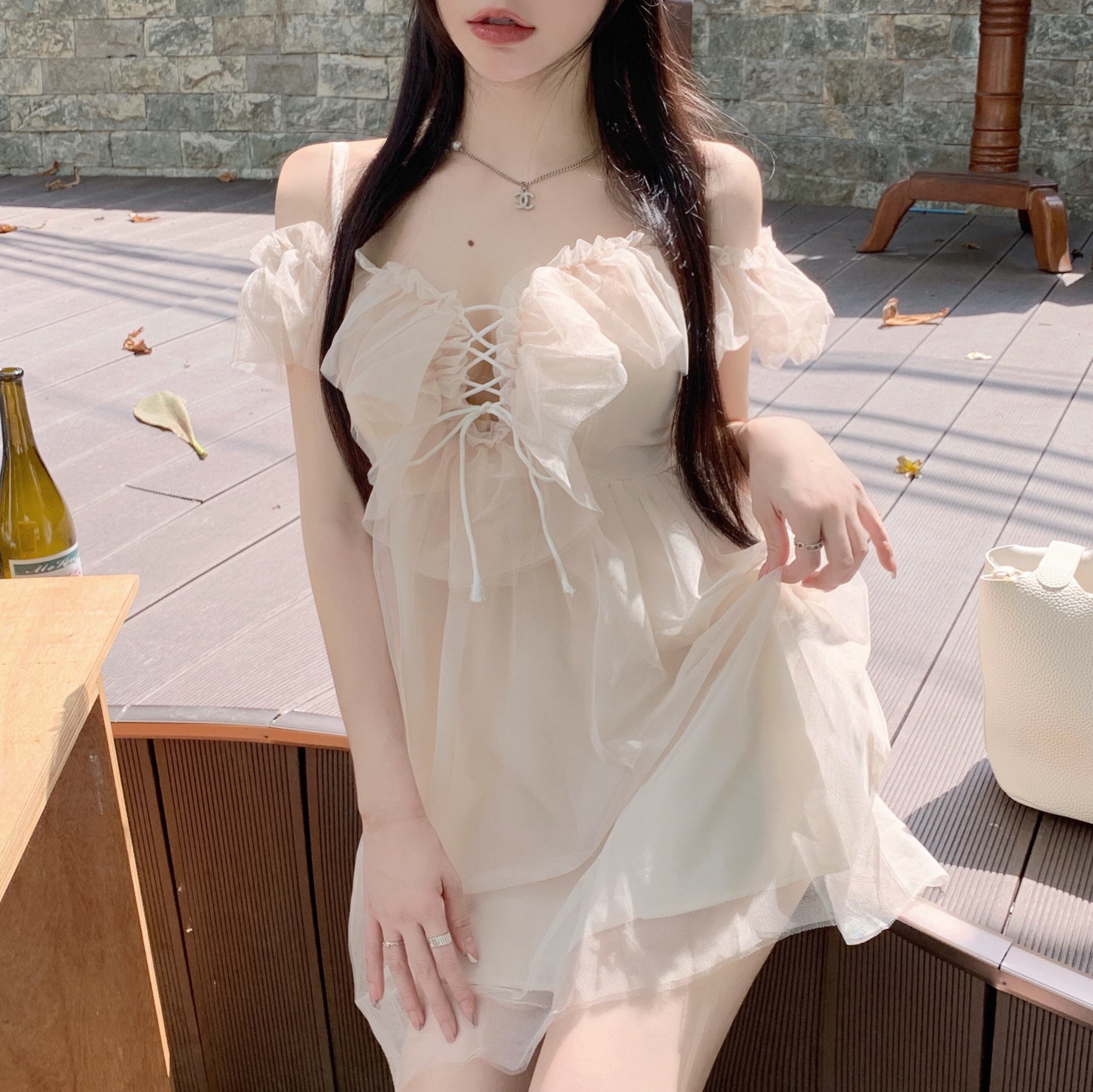 スカート女性大人の誕生日スモールドレススーパーフェアリーフレンチスウィートでセクシーなローカットVネックふくらんでいるサスペンダードレス micat95822811485