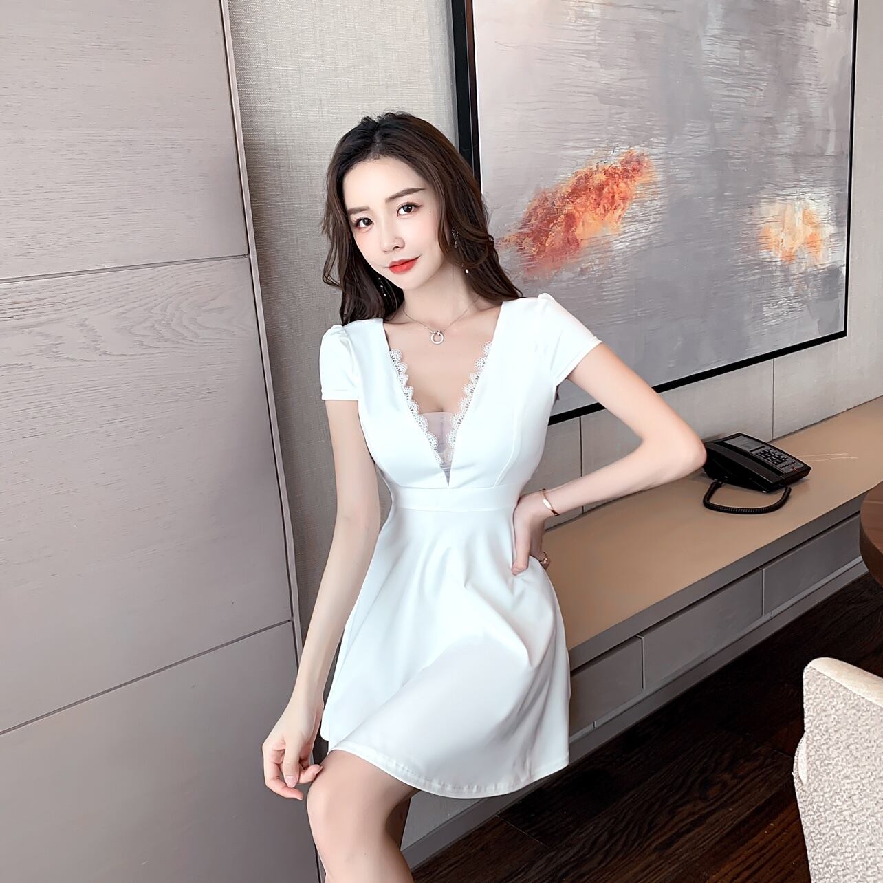 ナイトクラブの女性の作業服気質セクシーな作業服ローカットディープVネック痩身腹カバードレス micat25244096094