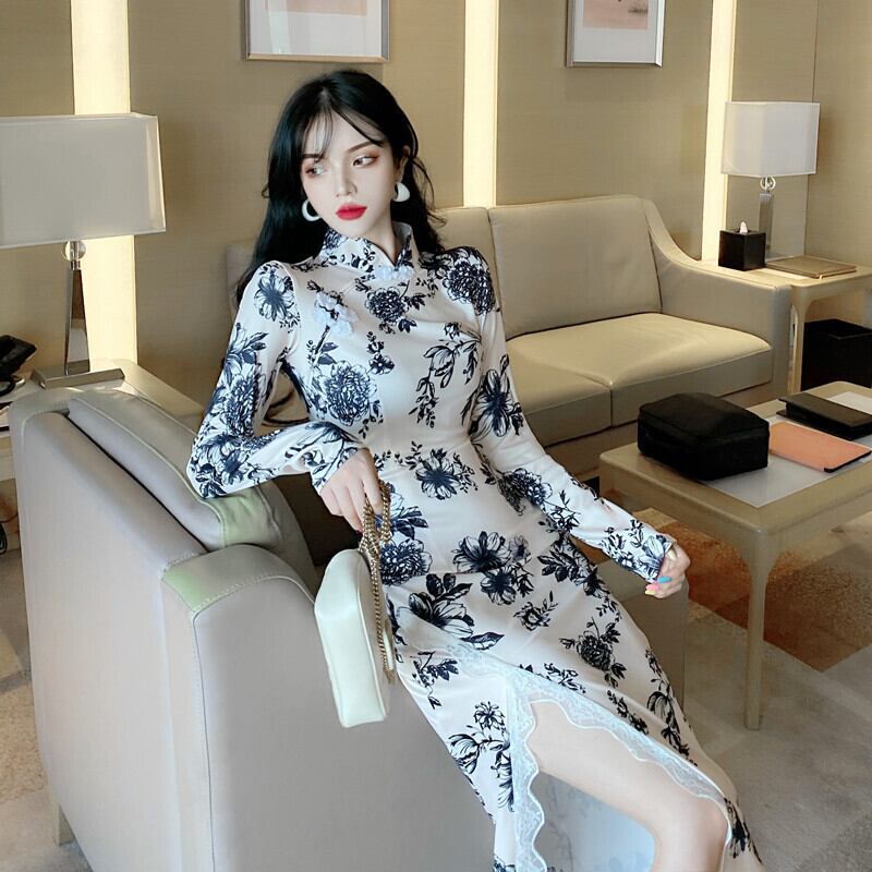 秋の服2021新しい女性のインターネット有名人アンカーチャイナスタイルの印刷媒体と長袖はチャイナドレスの若いスタイルを改善しました micat62071692075