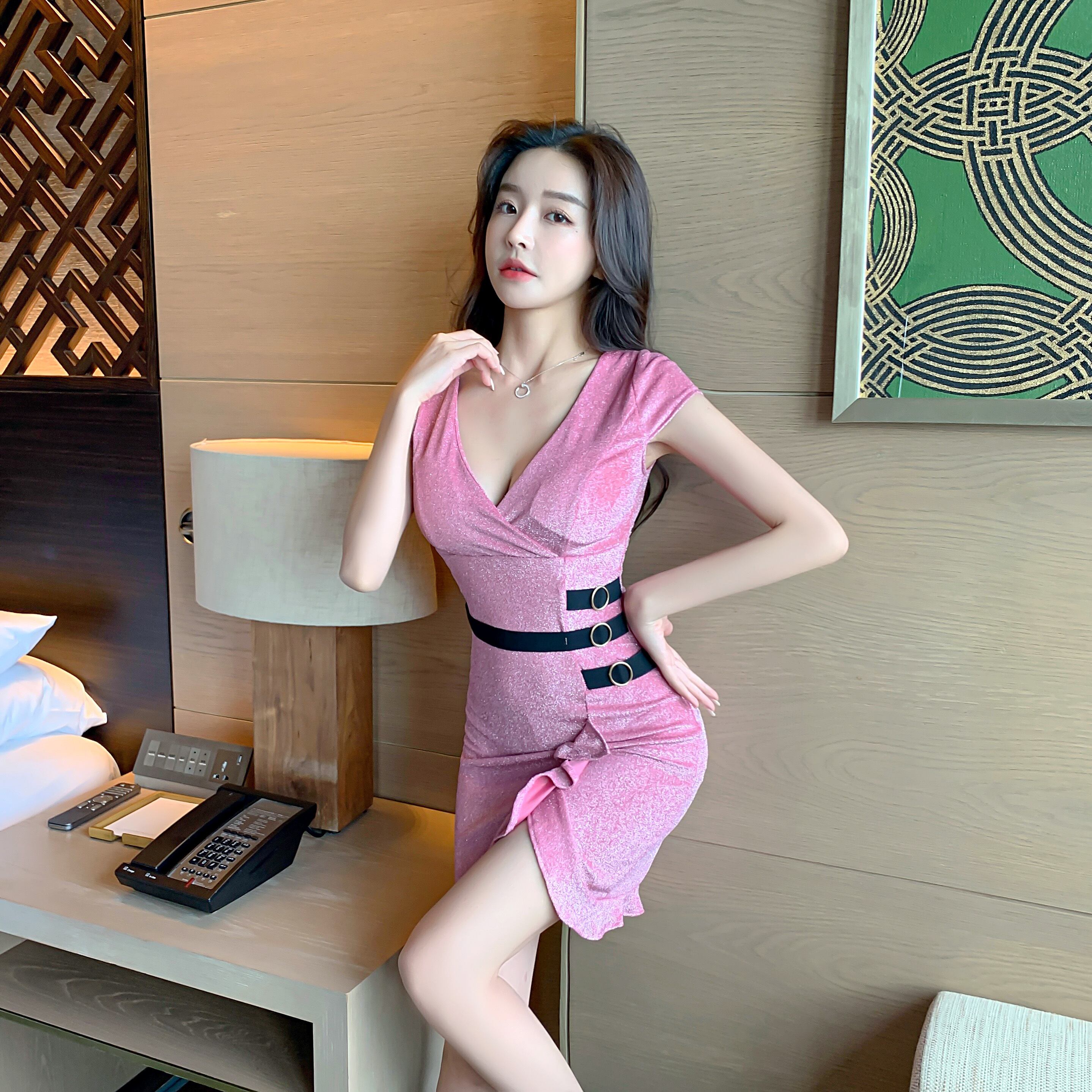 ナイトクラブの女性の夜の作業服は薄い気性の作業服を示していますセクシーなローカットVネックの明るいシルクフィッシュテールドレス micat65434514158