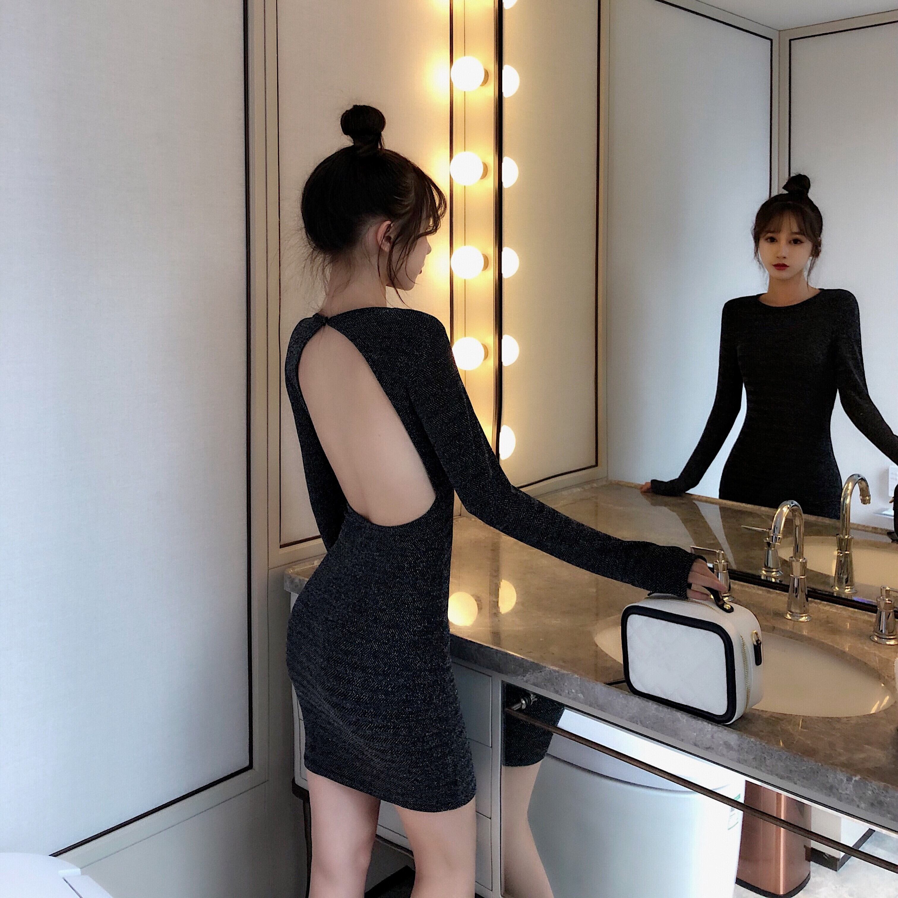 2021年秋新しい女性の夜のショージャンプディスクスパークリングシルクセクシーな中空バックレスタイトフィットヒップドレス micat46553749232