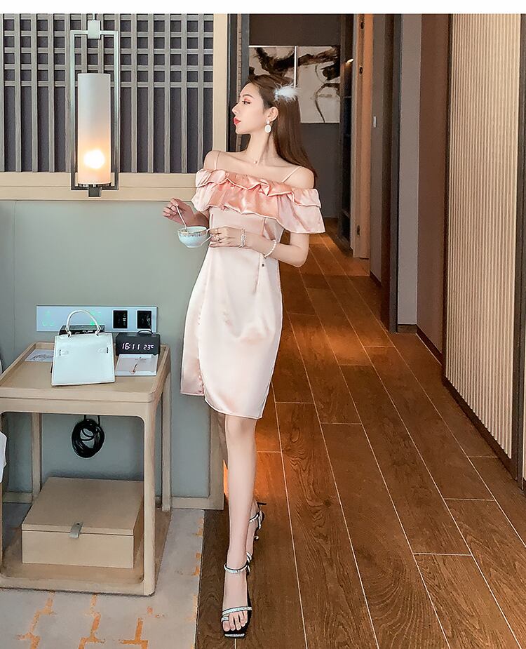 ナイトクラブの女性の夜の宴会の気質フレンチドレスセクシーなフリルワンショルダーサスペンダードレス micat94038218580
