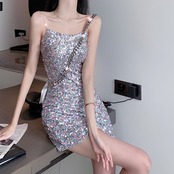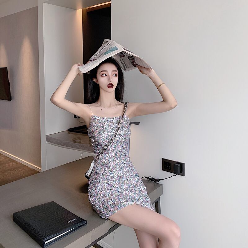ナイトクラブレディースナイトクラブナイトクラブスモールドレスショートセクション光沢のあるカラフルなスパンコールセクシーバッグヒップサスペンダードレス micat92794862135