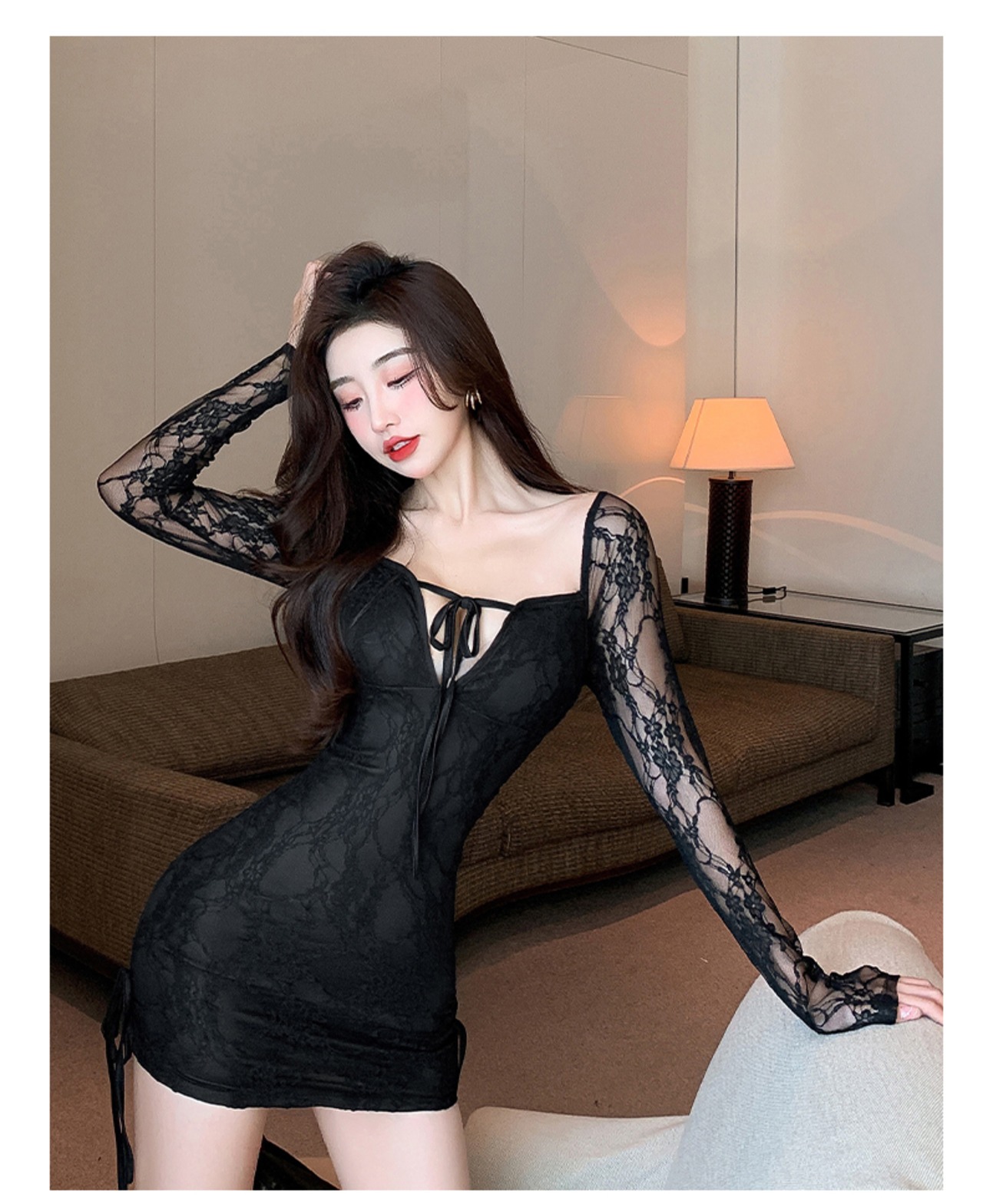 ライブ服女性アンカーポジェニックナイトショップセクシーなローカットディープVネックレース長袖オフショルダーホルターネックドレス micat77952762604