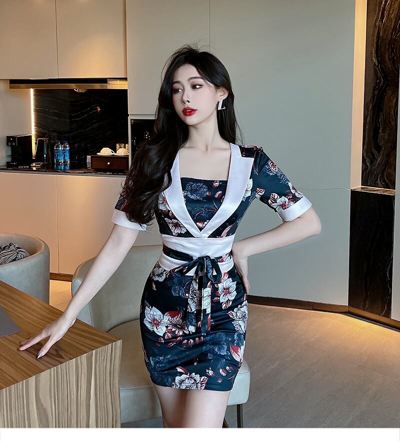 ナイトクラブレディースナイトクラブフットバス技術者オーバーオール気質セクシースクエアカラースリムヒップ着物ドレス micat84385448578