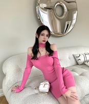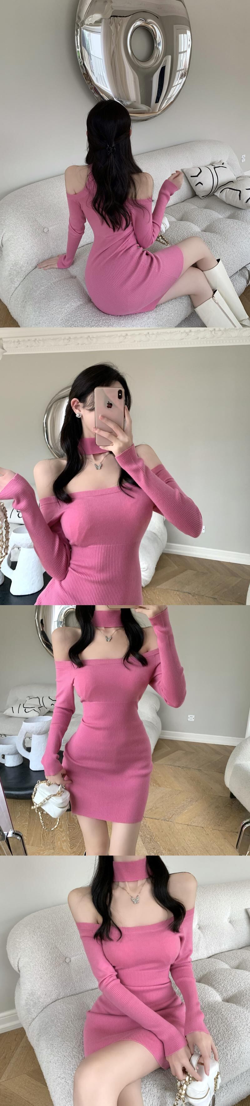 生放送服女性アンカー服ポジェニックハイエンドピュアデザイスタイルセクシーワンショルダーニットハイネックホルタードレス micat17834240223