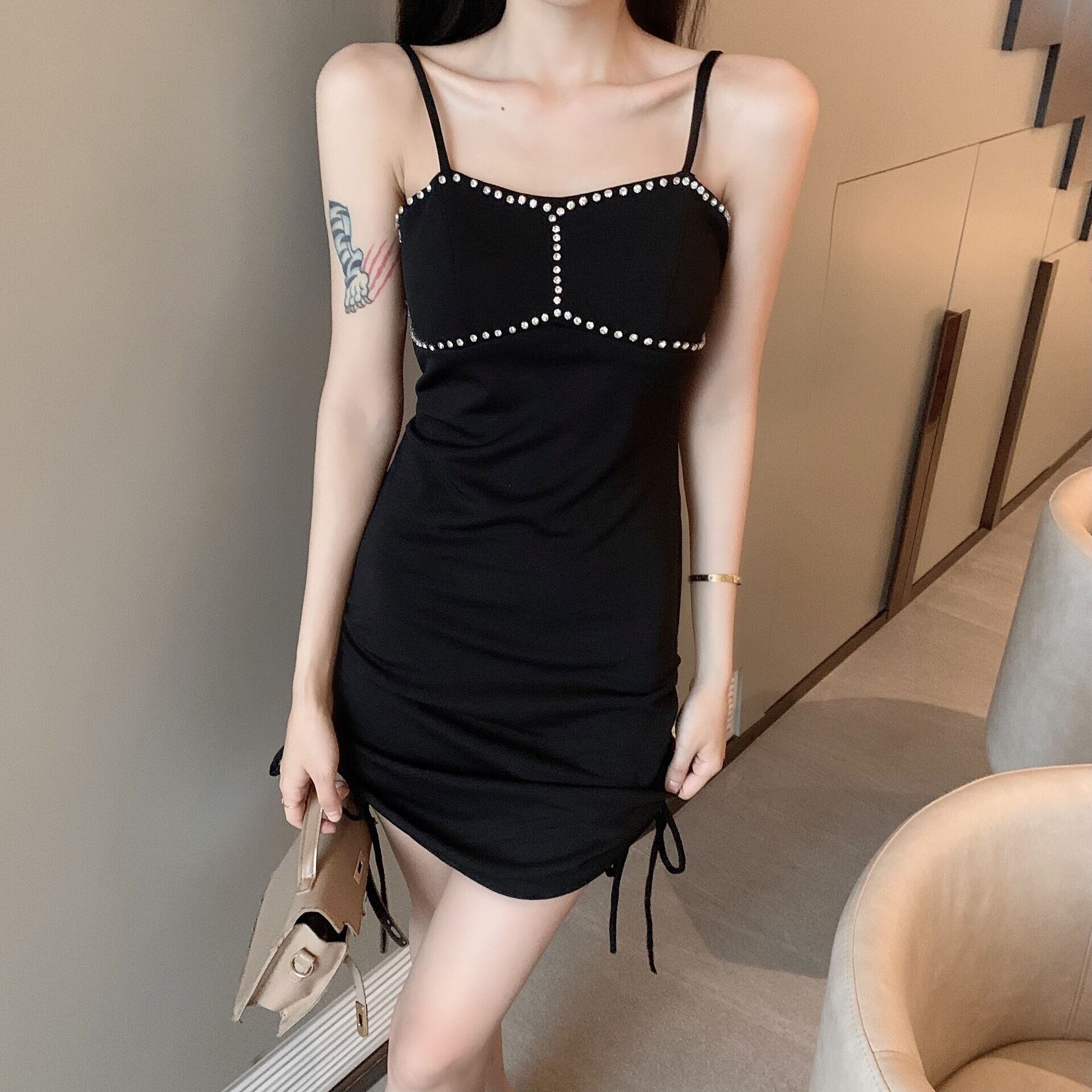 ナイトクラブレディースバーディスコ服リトルブラックドレス光沢のあるラインストーンセクシーなショートバッグヒップサスペンダードレス micat44091378253