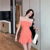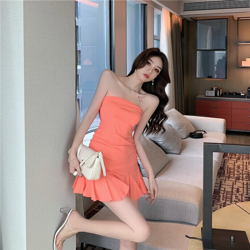 ナイトクラブレディーススモールドレスショート気質セクシーワンショルダーショートフィッシュテールチューブトップスカートナイトクラブドレス micat19253195258