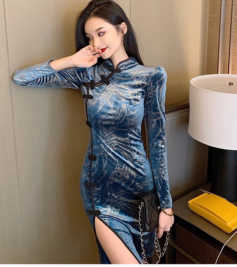 秋と冬のチャイナドレス2021新しい若いレトロな改良された中国風ゴールドベルベットスリムヒップドレス micat29693769434