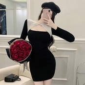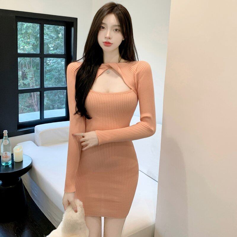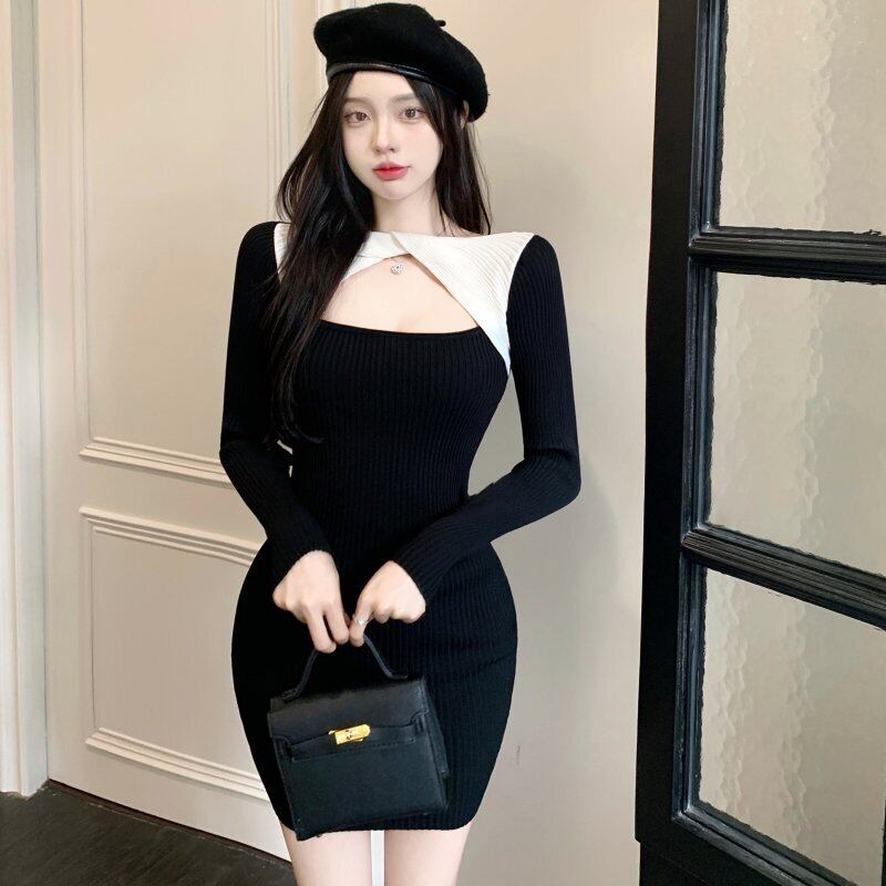 ライブ放送服女性アンカーポジェニックファッションステッチセクシー中空ニットスリムバッグヒップボトミングドレス micat94582275408