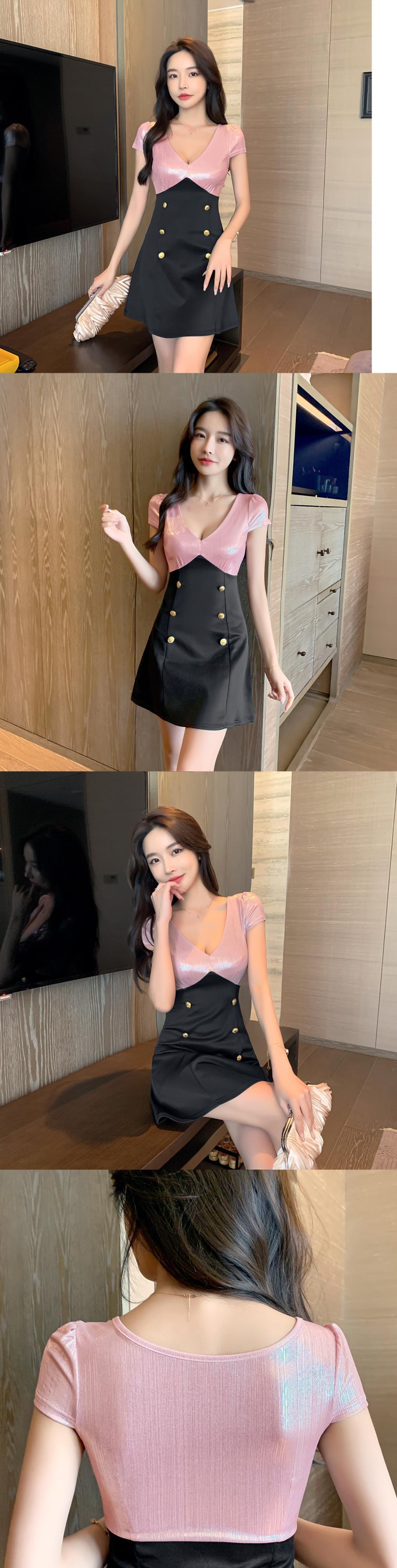 ナイトクラブの女性の作業服セクシーな作業服ローカットディープVネック光沢のあるステッチスリムAラインドレス micat13513283135