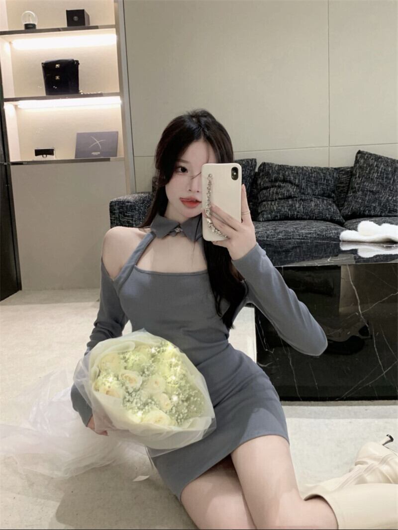 ライブ服女性アンカーポジェニックシニア若いセクシーなオフショルダーポロカラー長袖ホルターネックチャイナドレス micat89771743189
