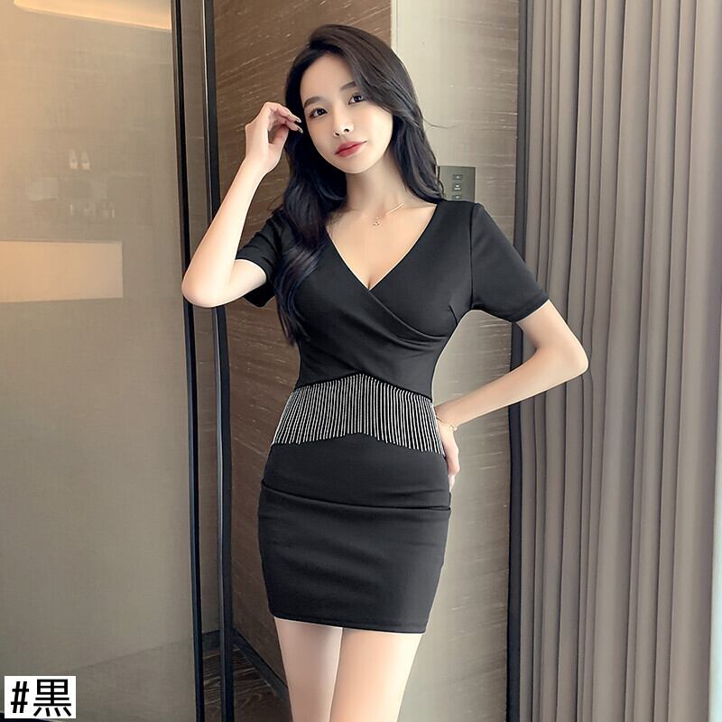 ナイトクラブの女性の作業服セクシーな作業服プロの服ローカットVネックチェーンtelバッグヒップドレス micat79179582380